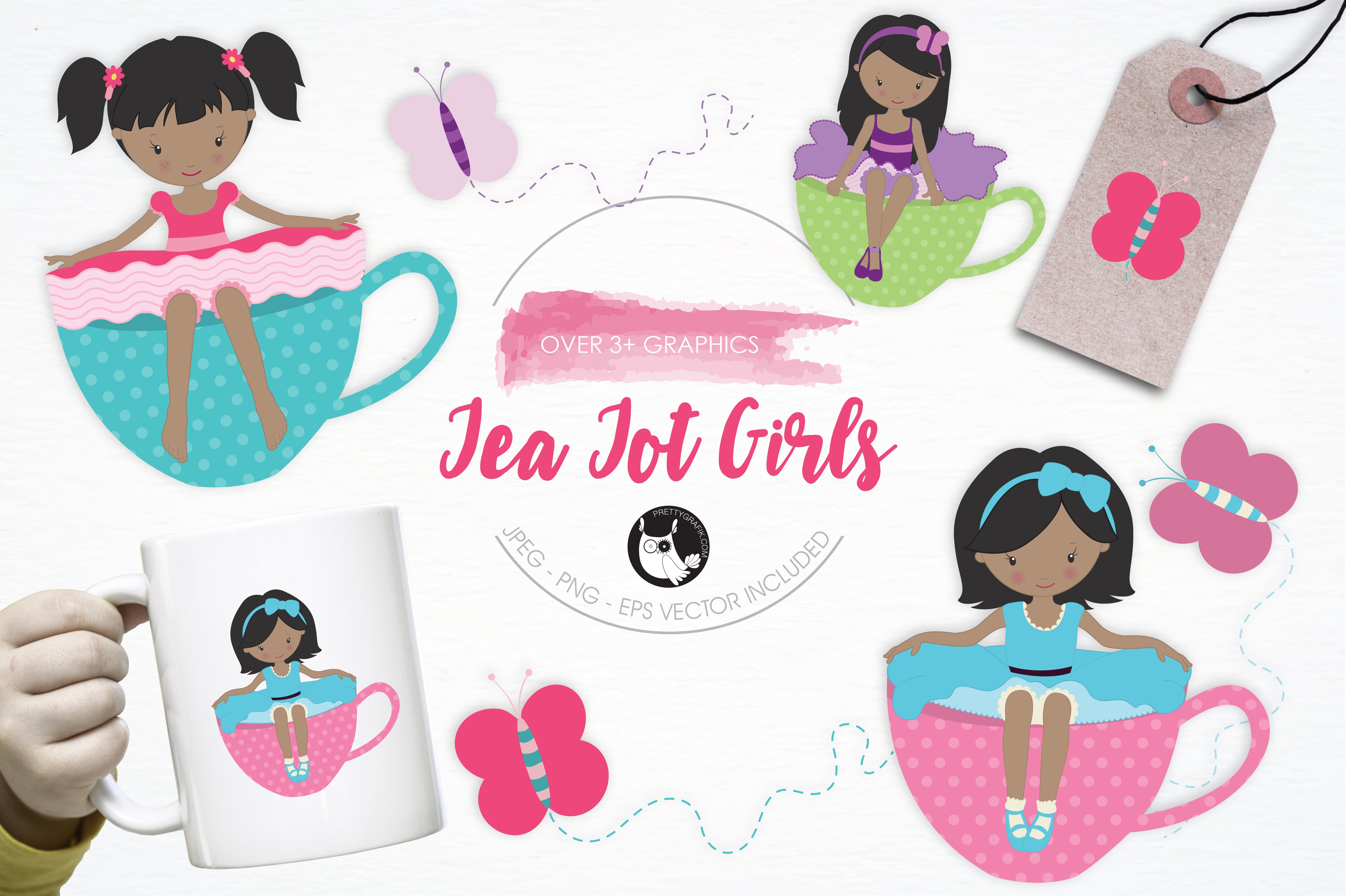 Tea Tot Girls pack features over 3 design elements and is perfect for invitations, greeting cards, product design, tags, labels and so much more.