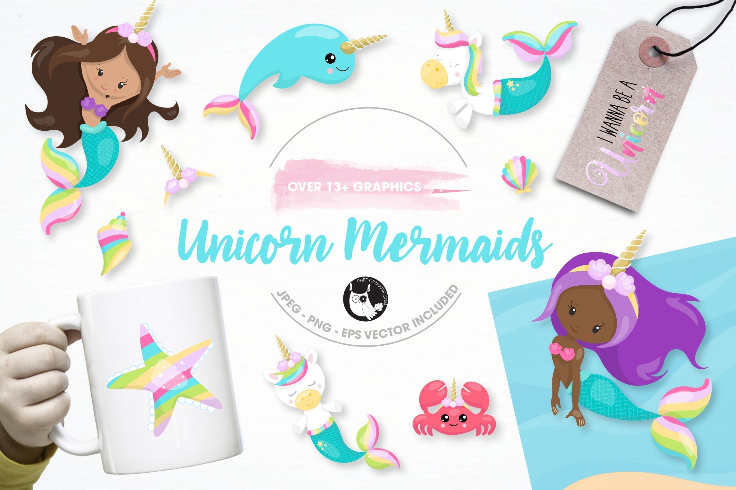 unicorn mermaid illustration pack - Vector Image Vector Graphic
