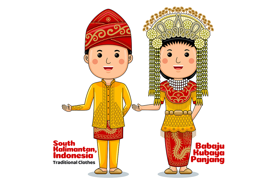 Welcome Gesture with Couple South Kalimantan Traditional Clothes Vector Graphic