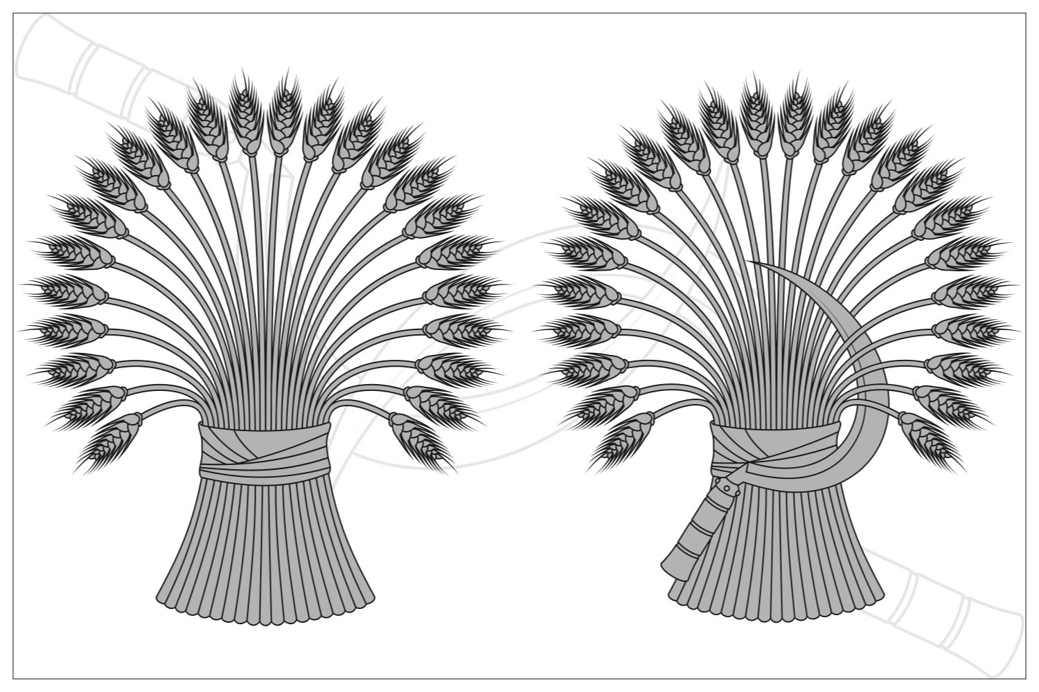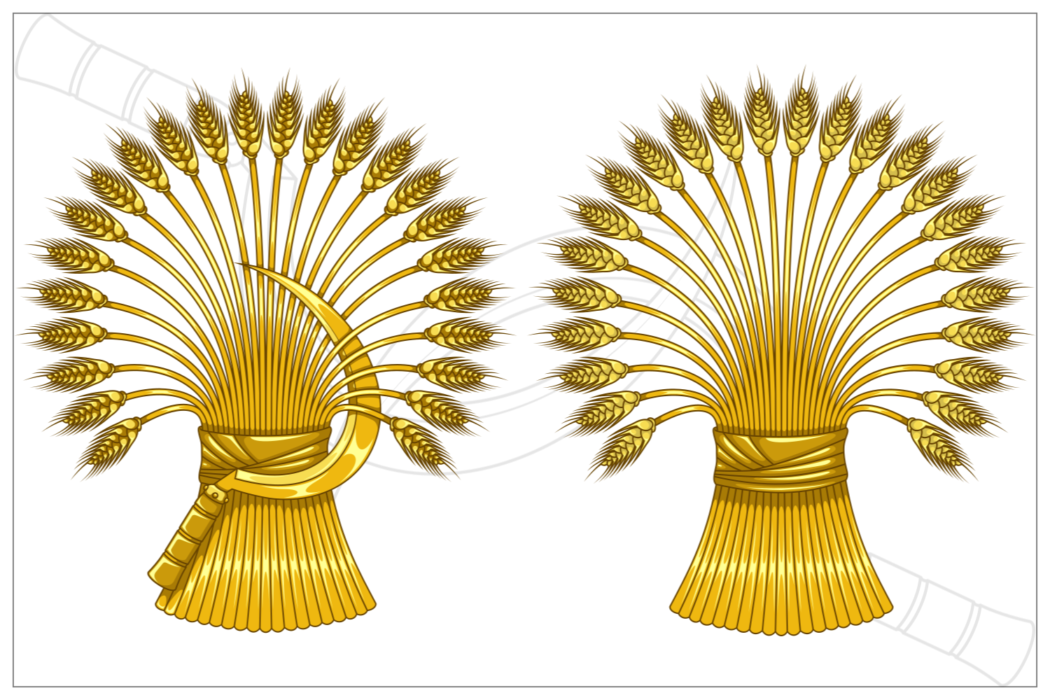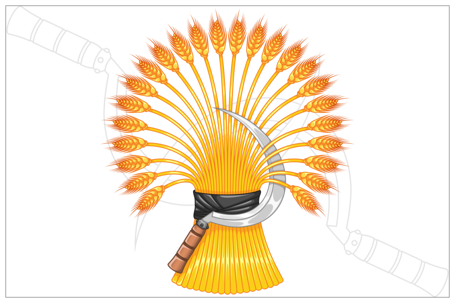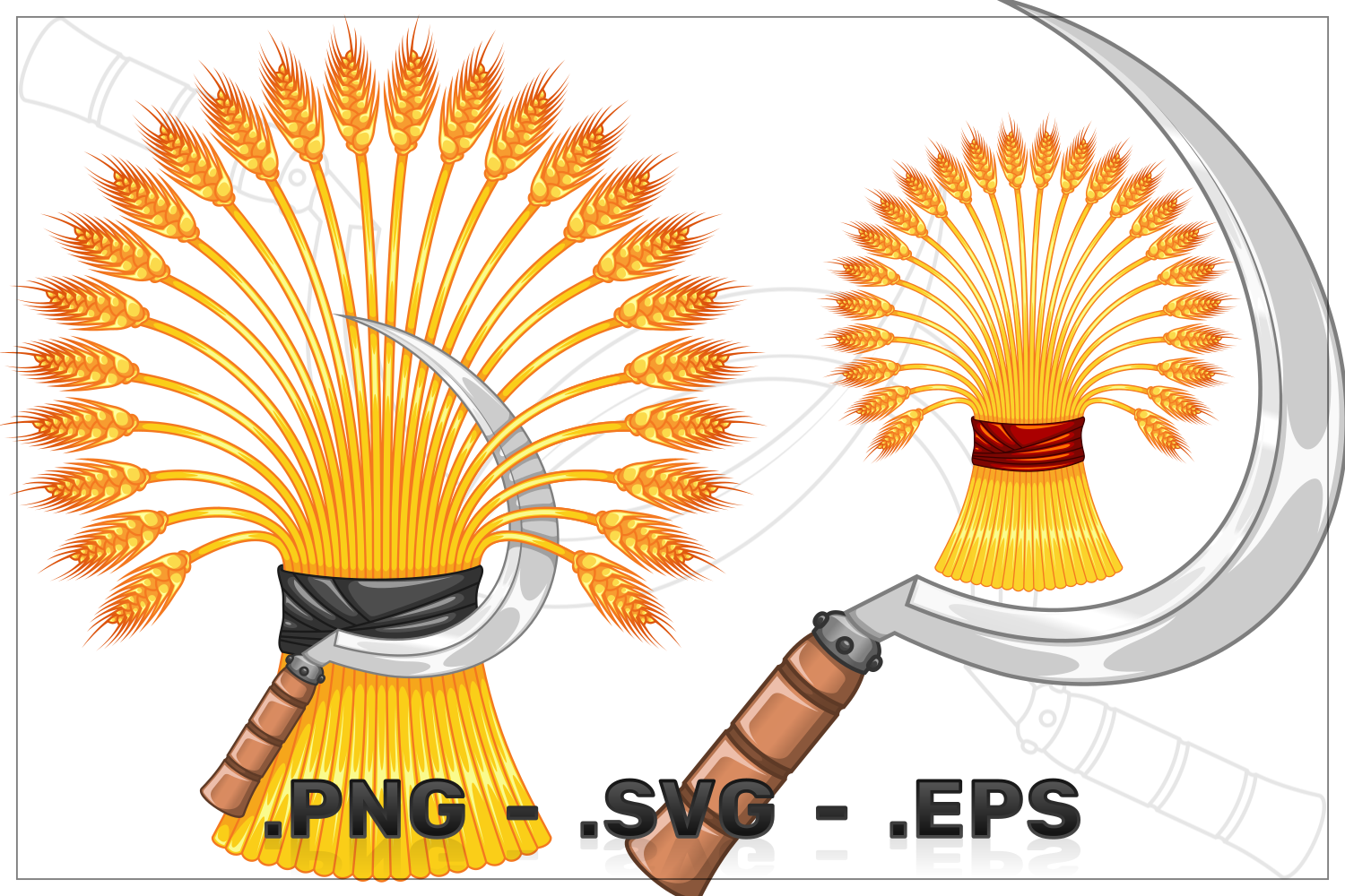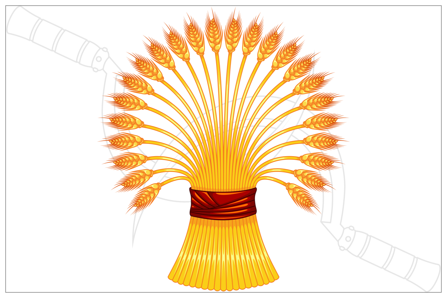 Vector design of Wheat ears with sickle, Organic farm cereals, Harvest tool with Wheat sheaf.