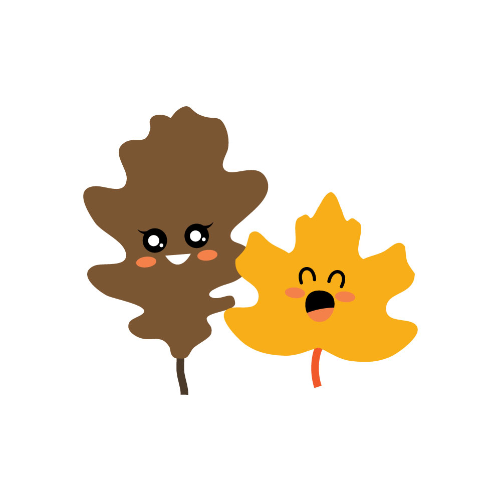 Charming vector illustration featuring two smiling, personified autumn leaves with friendly faces.