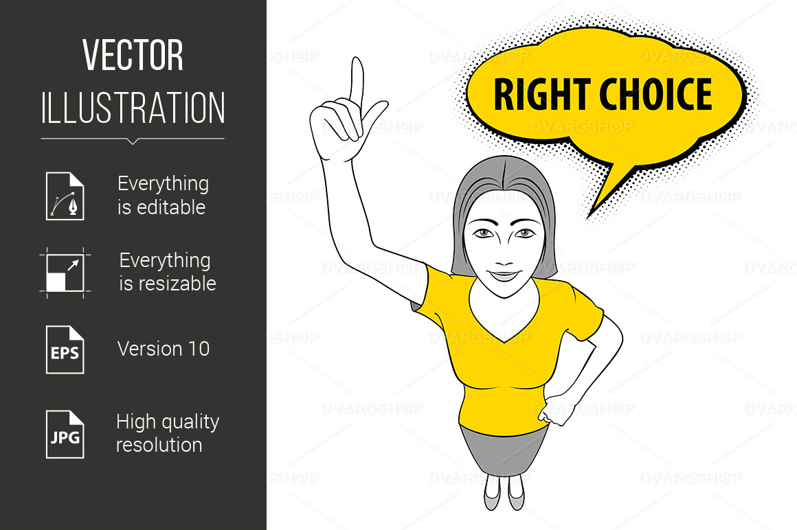 Cartoon Illustration of a Young Woman Giving a Thumbs Up. Right Choice