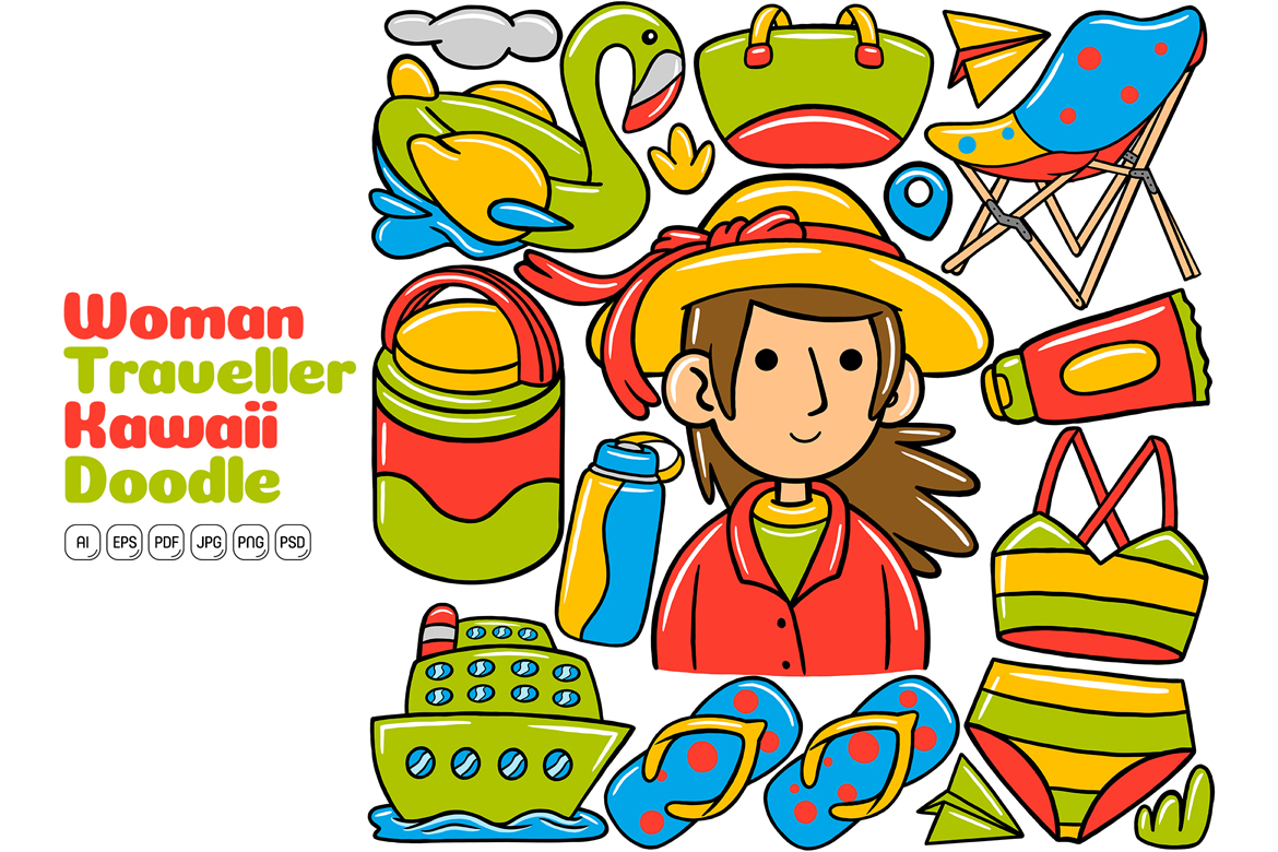 Woman Traveller Kawaii Doodle Vector Illustration Vector Graphic