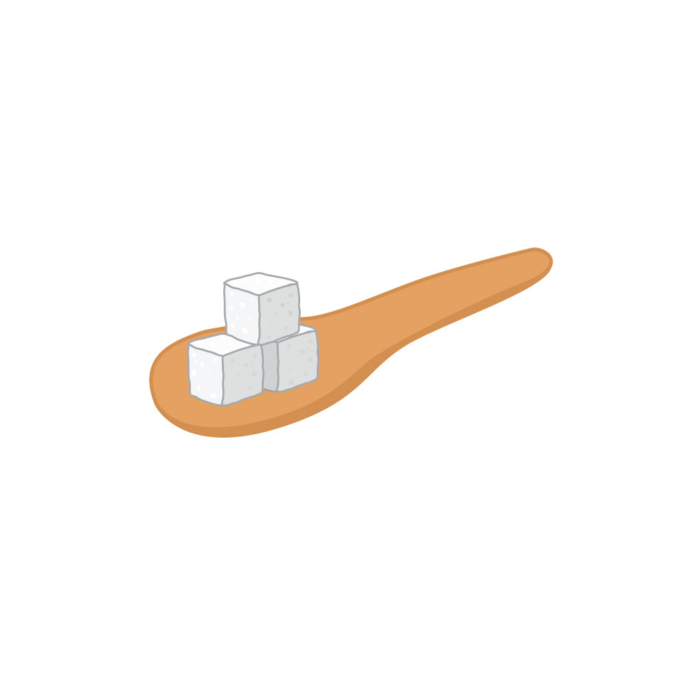 This clean and modern vector illustration features a realistic wooden spoon artistically arranged with sugar cubes.