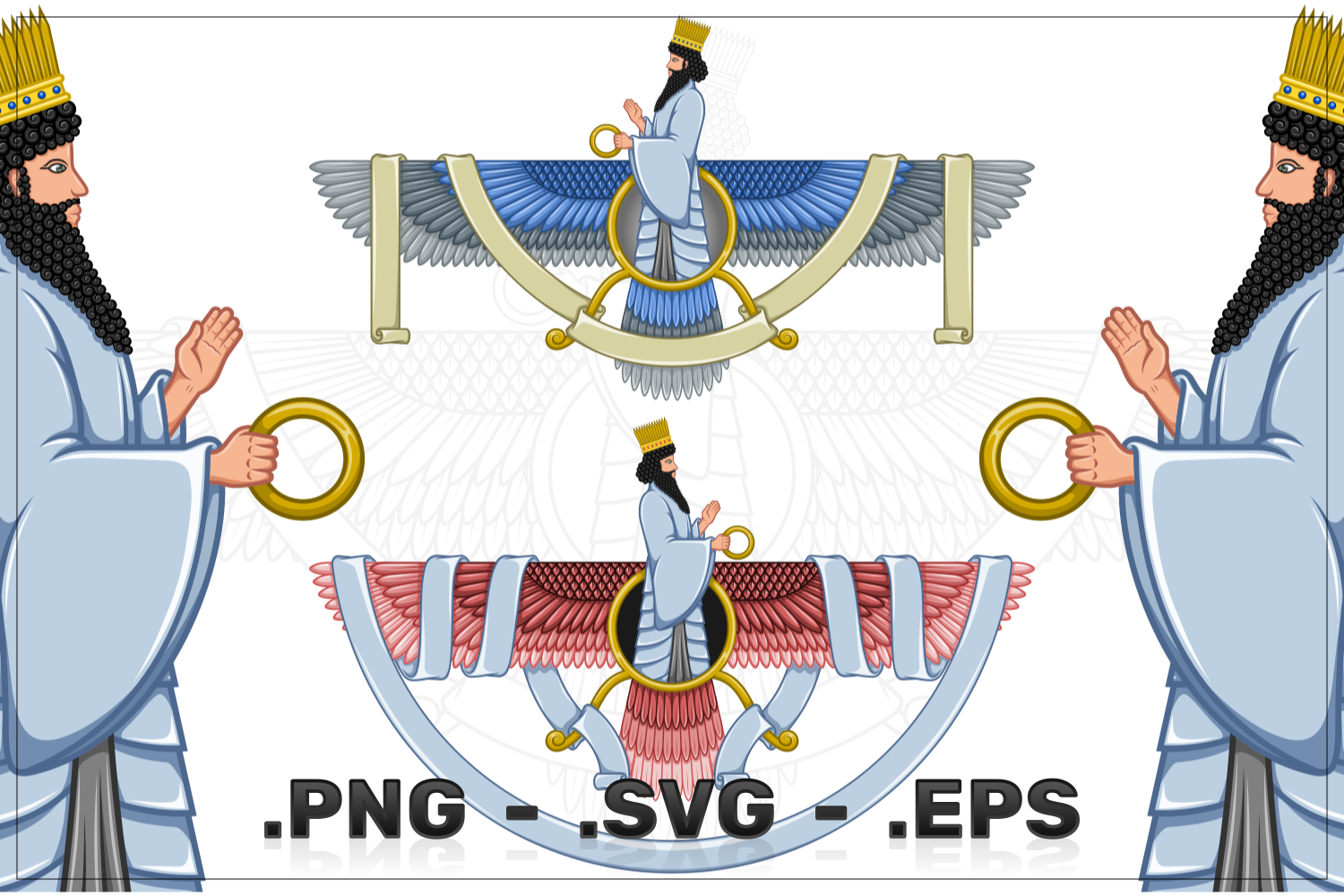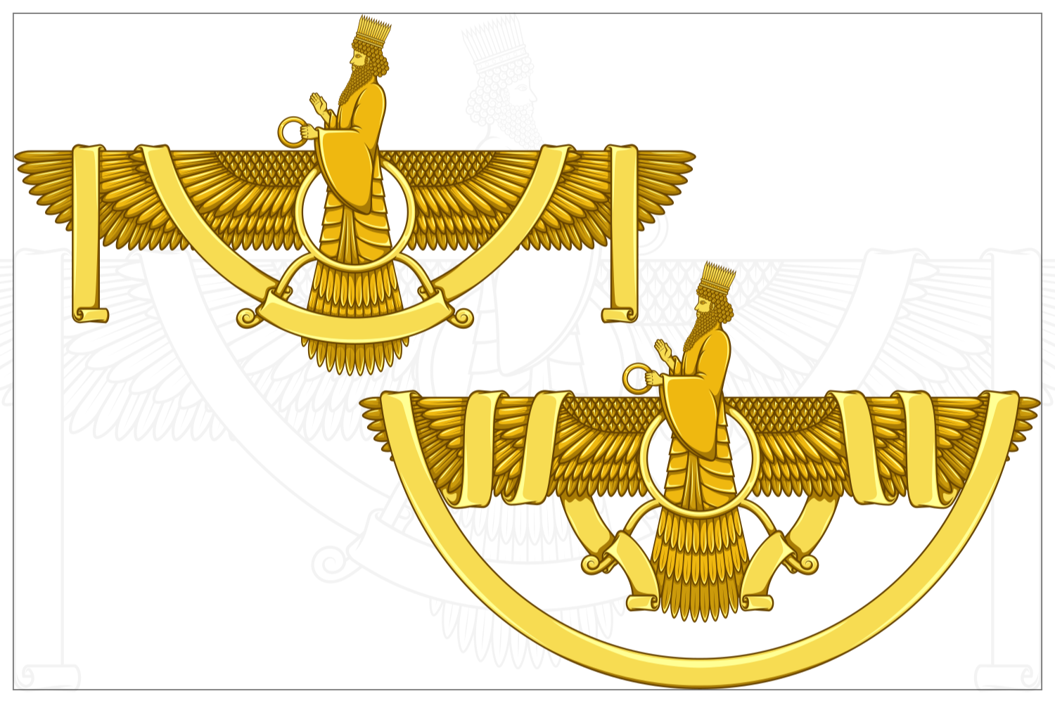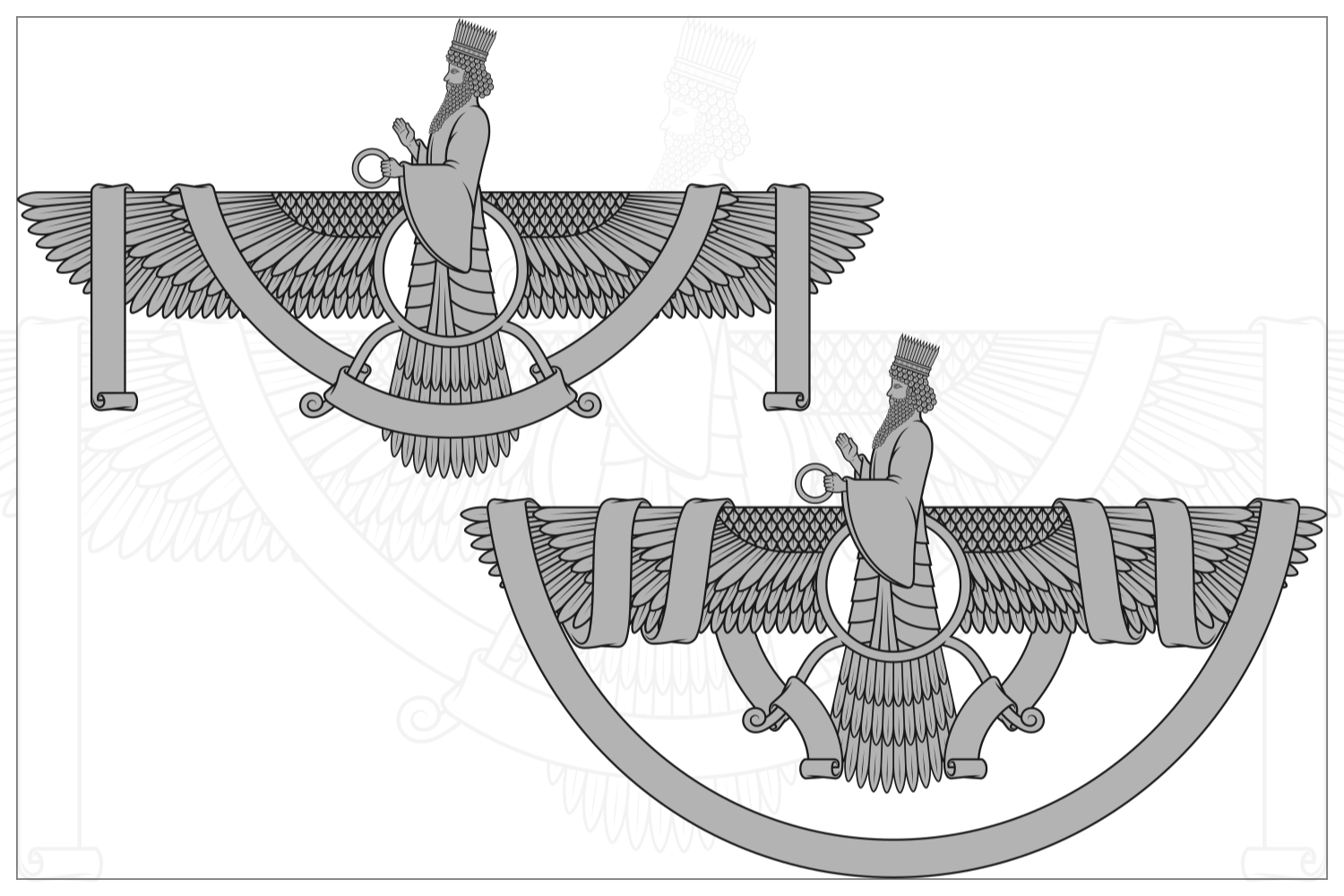 Vector design of Faravahar symbol, symbol of Zoroastrian religion, prophet Zoroastrianism on winged disk surrounded with ribbon