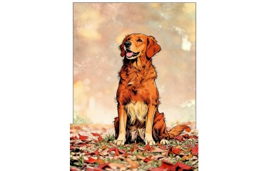 Golden Retriever Sitting Land (Ai Illustration Image + Vector Line Art)