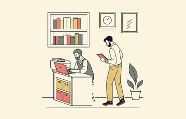 Shelves climb the slanted wall behind her in gentle steps. They hold the quiet treasures of someone who reads seriously and dreams vividly: a short row of colorful paperbacks with creased spines, a pair of matte ceramic vases filled with dried bunny tails and pampas, three cloth-bound notebooks stacked by size, a tiny brass incense holder that has not been used yet today. Nothing is crowded; negative space is treated with the same care as objects.