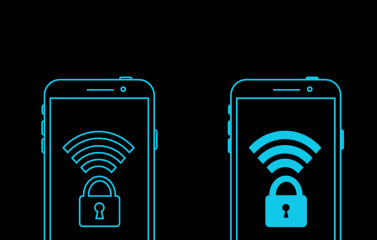 Mobile WiFi Security Concept With Locked Padlock Icons On Smartphone Screens In Blue Outline