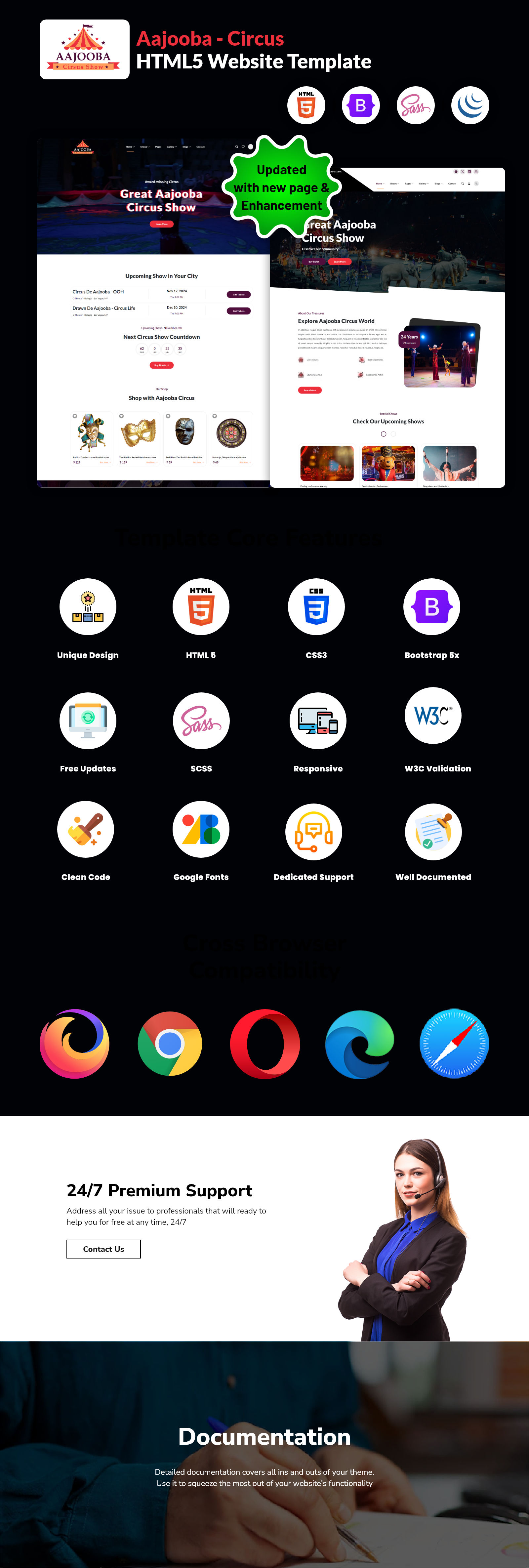 Our Aajooba Circus HTML5 website template has three different types of home page demo pages. Along with that, different types of pages have been created to show the program of the circus and pages related to the performance artist associated with them. Our effort has been made to show any type of presentation related to your circus website to the people. Which is an HTML template created with the latest Bootstrap technology.