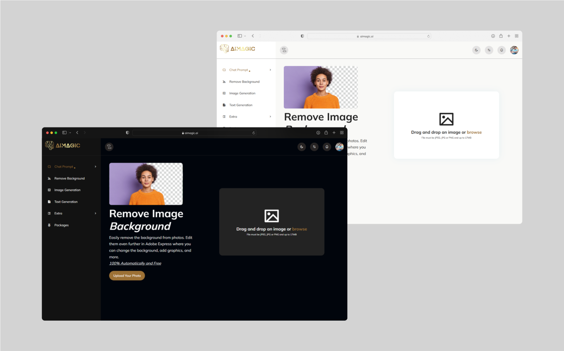 AIMagic is a modern, dark-mode HTML template built for the next generation of AI-powered platforms. Whether you're launching a chatbot service, AI image generator, background removal tool, or AI tutoring system, AIMagic provides the perfect canvas to showcase your innovations with style.