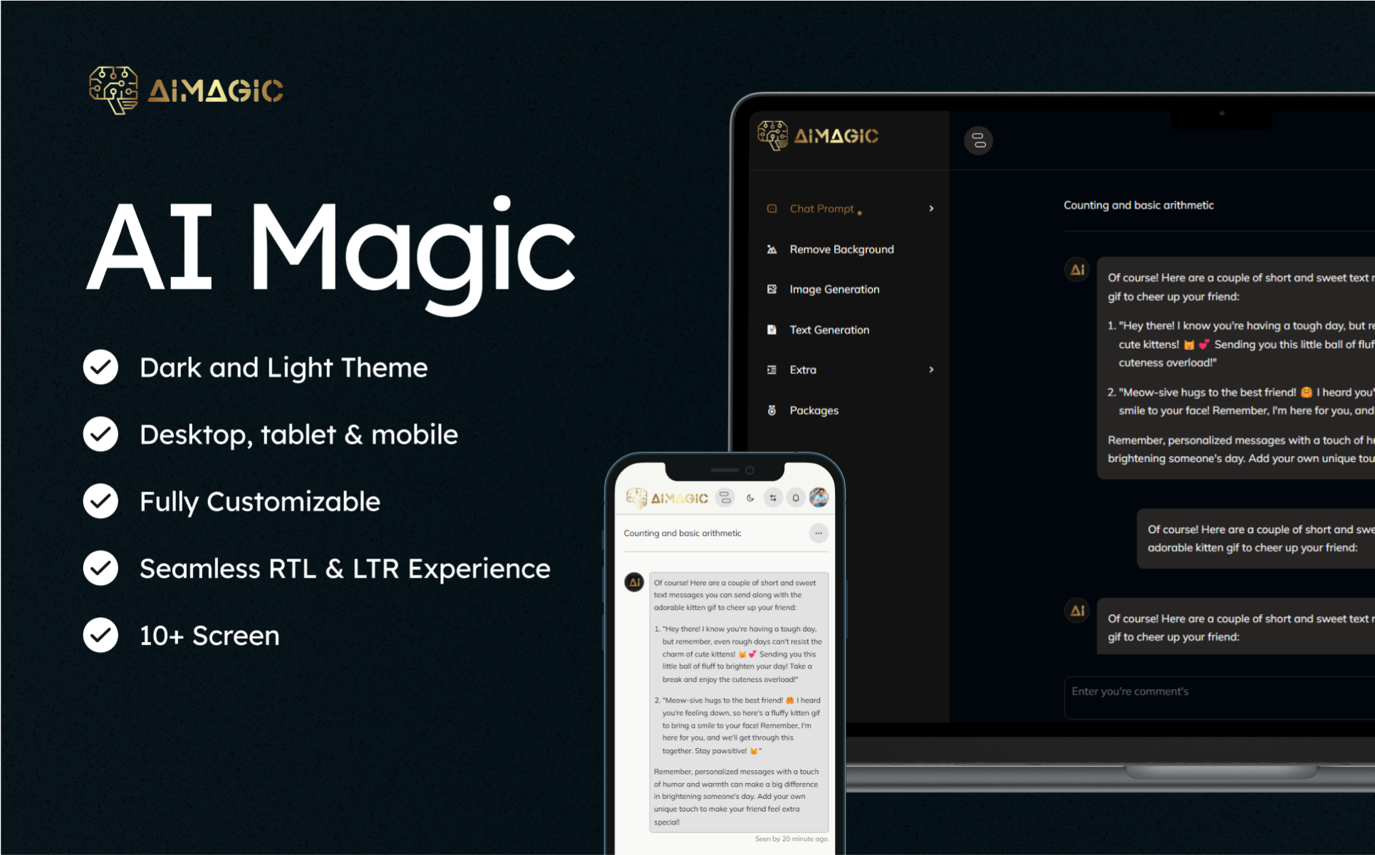 Packed with ready-to-use pages — including a dynamic homepage, dashboard, chatbot interface, image creation tool, background remover, pricing plans, settings, login, signup, and password reset — this template covers everything you need. Thanks to its clean structure and easy customization, setting up your website is fast and hassle-free. With AIMagic, you can grab visitors' attention instantly using an eye-catching slideshow on the homepage and turn curiosity into engagement.