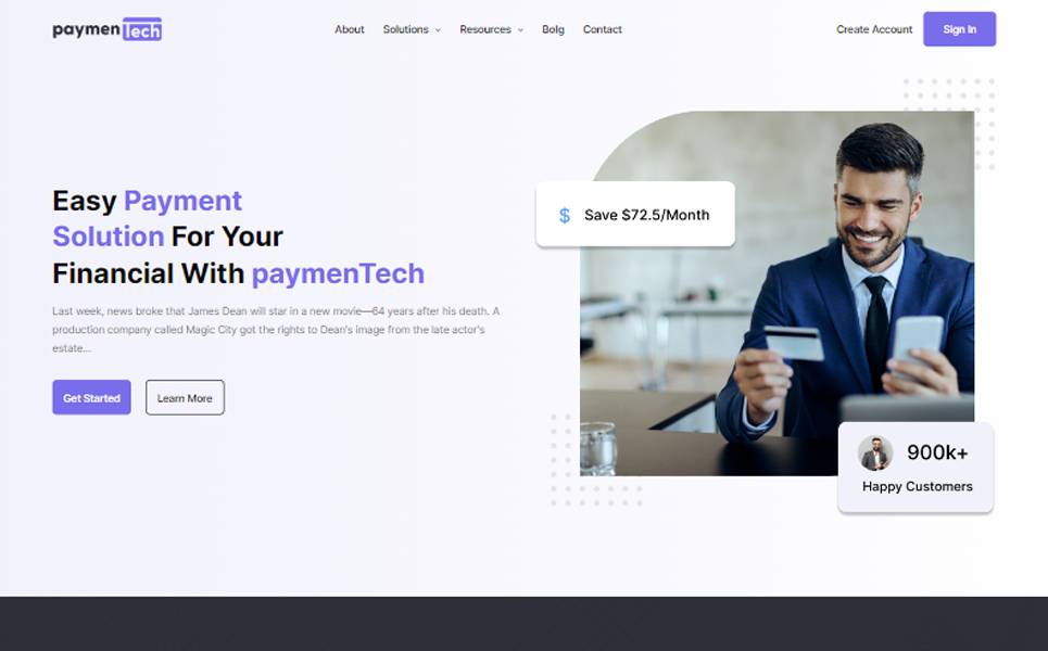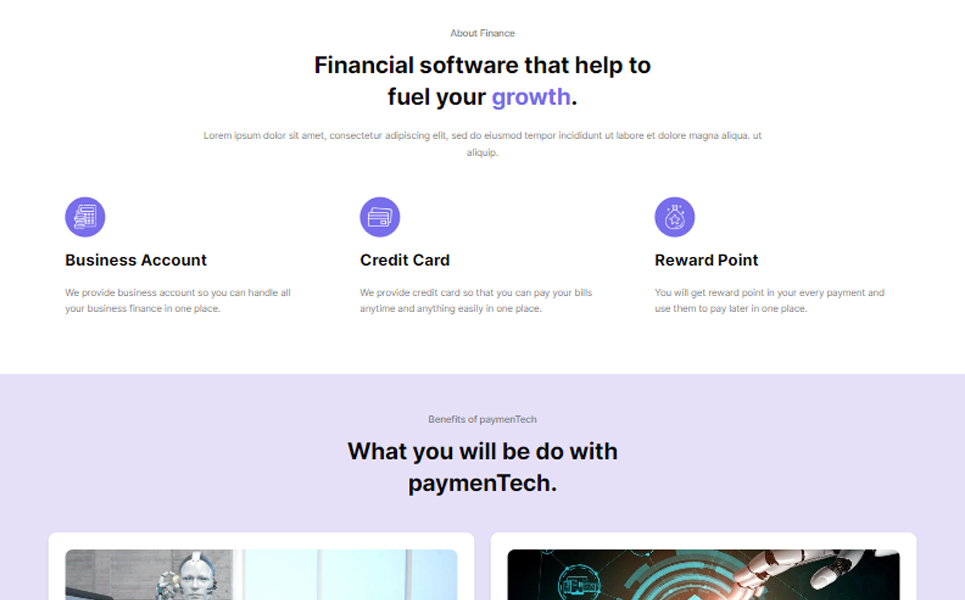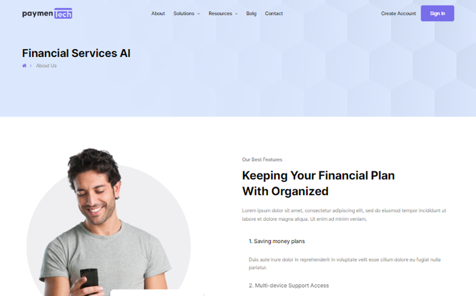 - AI Services Showcasing: Includes dedicated sections to highlight AI-driven payment and finance solutions.