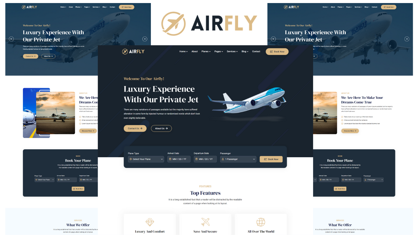 Airfly is a Professional HTML5 Template.Airfly template perfect for private airlines, private jet, book private flight, air ambulance, helicopters and related website.You can easily edit and customize the default homepage to make it in line with your specific content arrangement.Therefore it ensures a great user experience and also it is optimized for faster speed as we have used clean code which is well-documented as well. Airfly has a lot of styles and elements to help you make beauty and modern website in no time. Airfly design of this template is very unique and easy to customize that’s why this template surely helps a lot. Airfly has been made with the think of modern age demand and also added the currently best features.