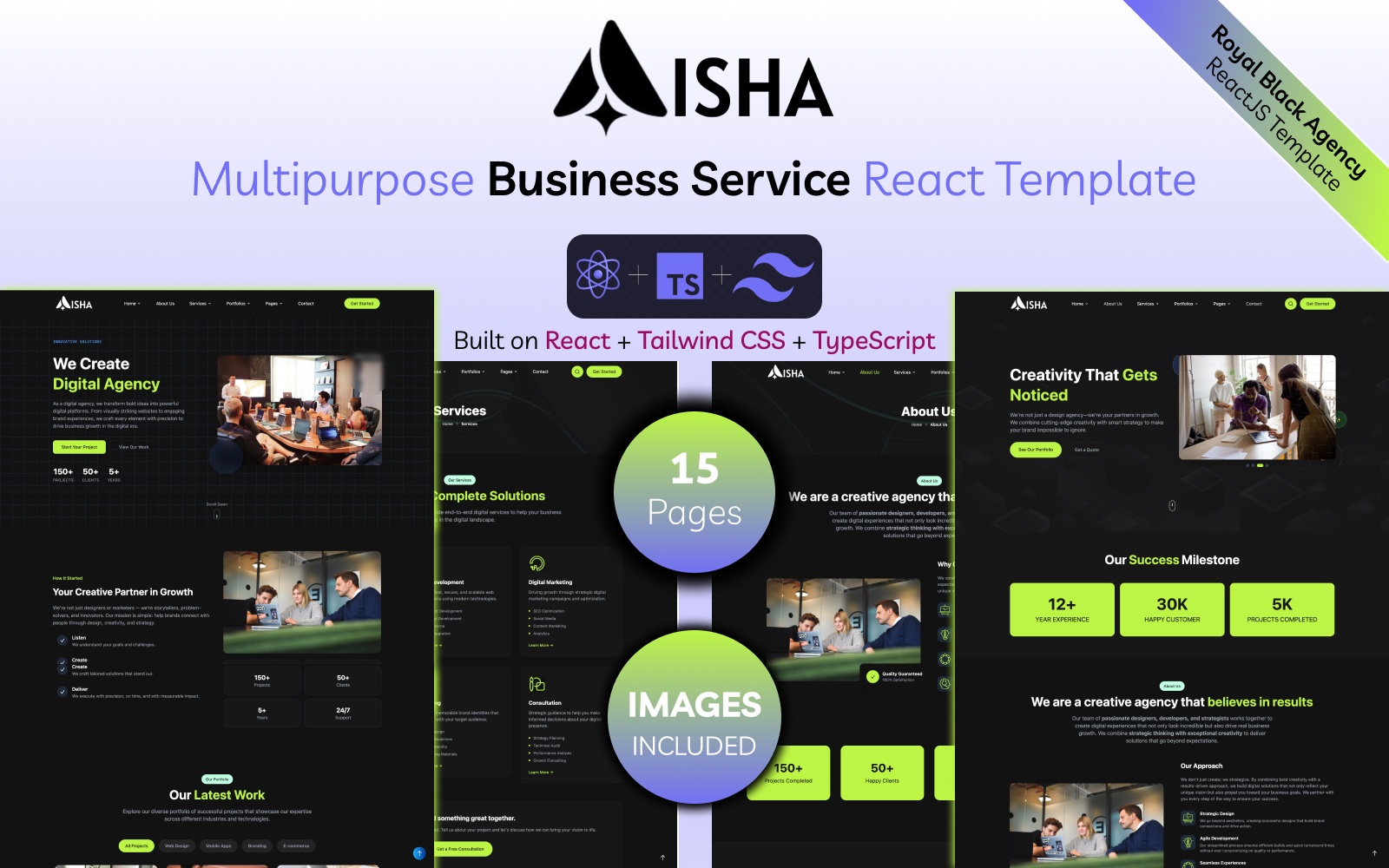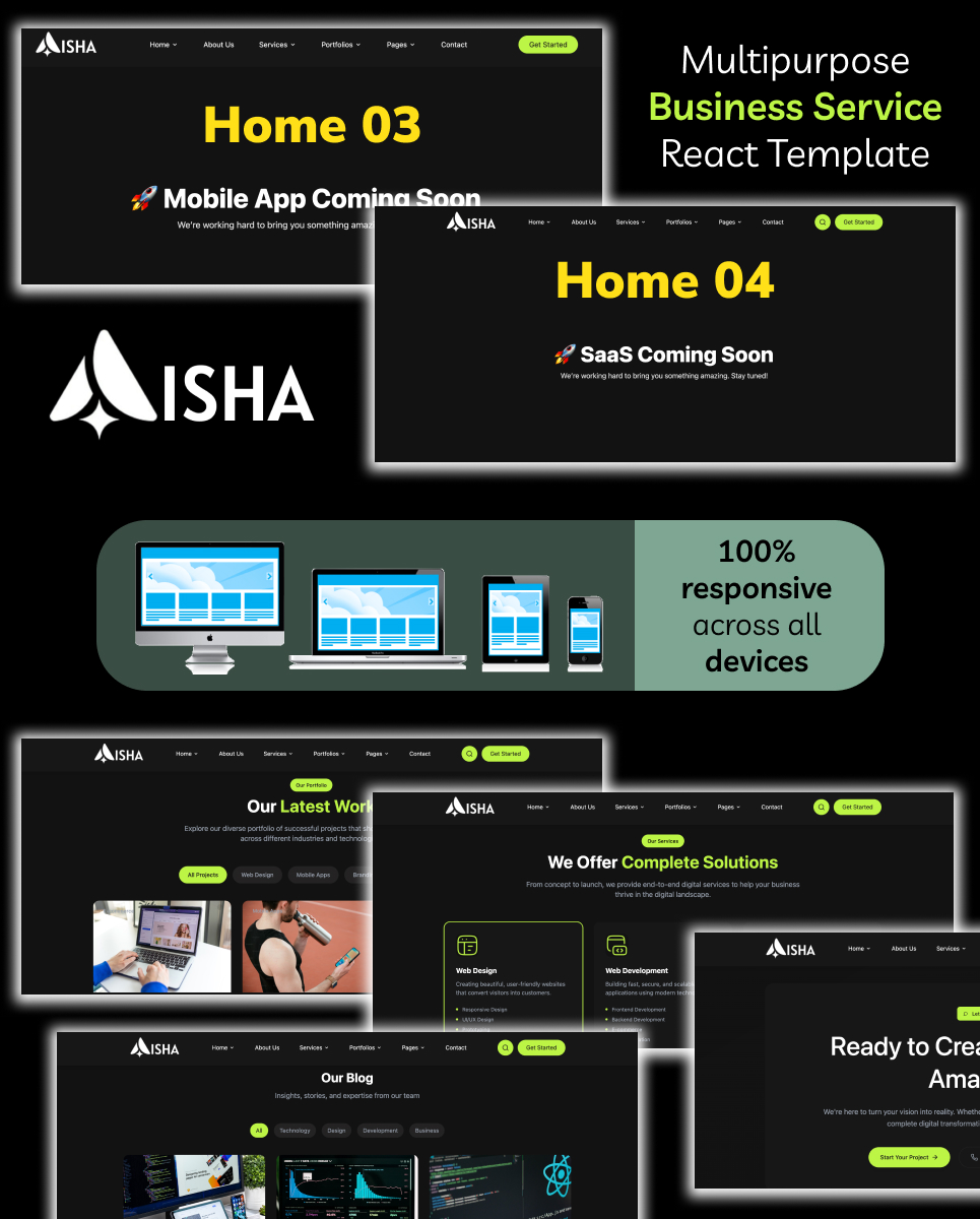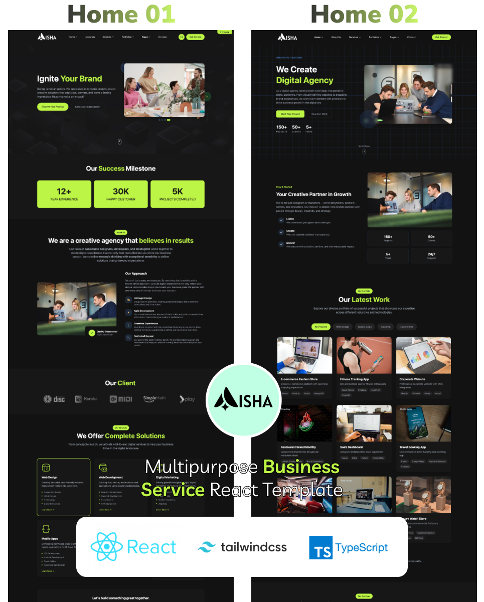 Introducing Aisha, the ultimate multipurpose business and agency React template designed to make your online presence unforgettable. Crafted with a sleek, Royal Black aesthetic, Aisha offers a modern and sophisticated design that’s perfect for a wide range of businesses and creative agencies.