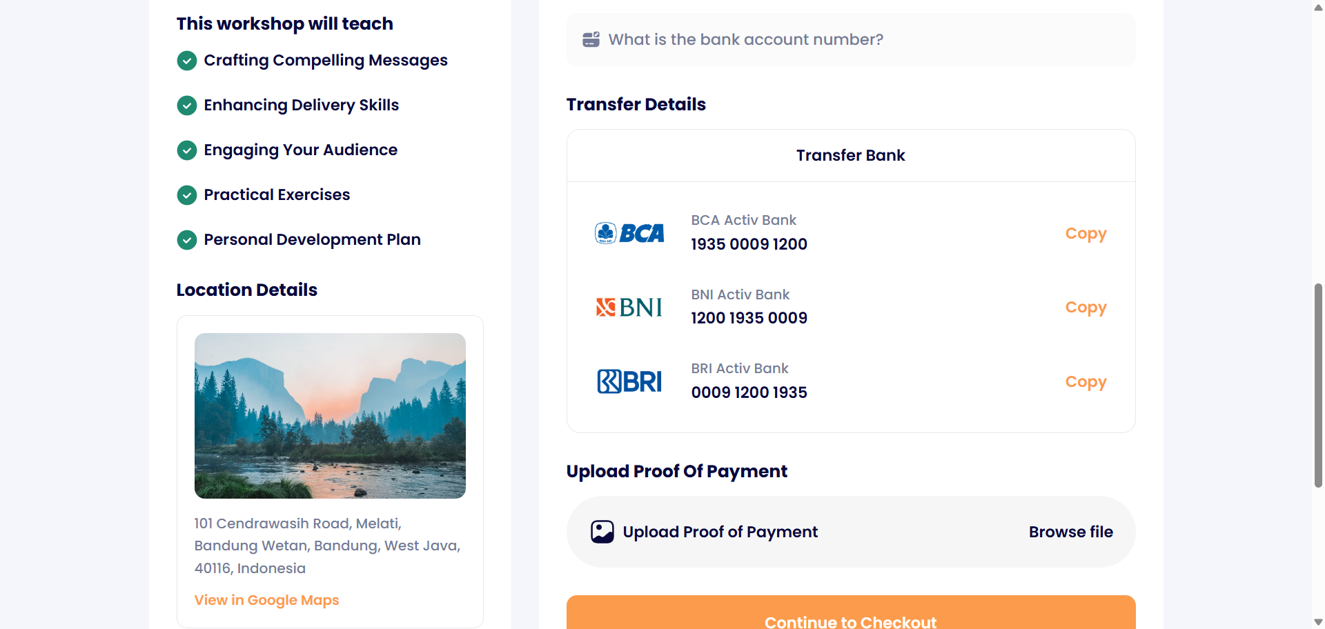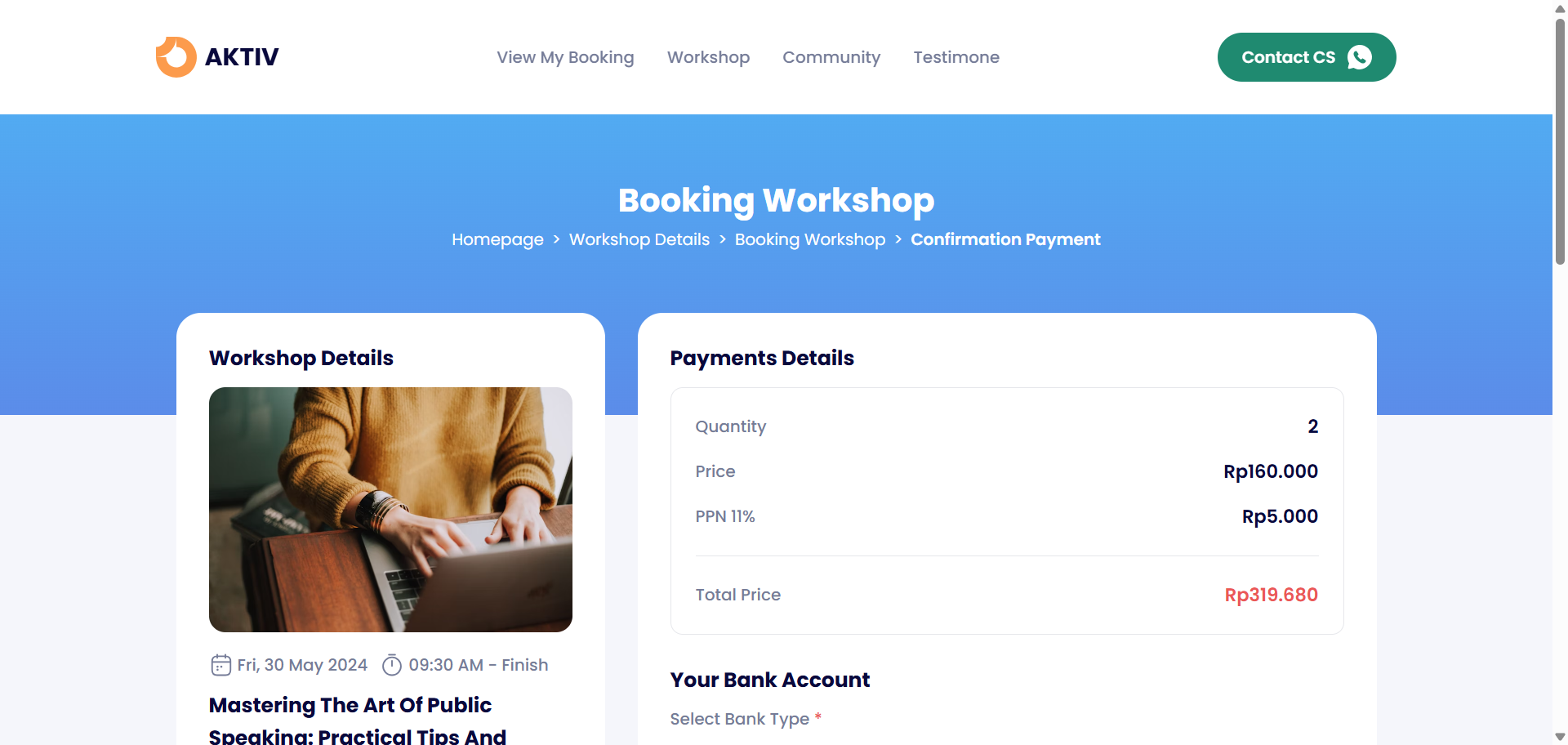 - Payment Confirmation - Multiple payment methods with bank transfer support
