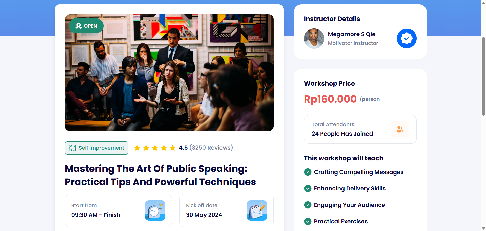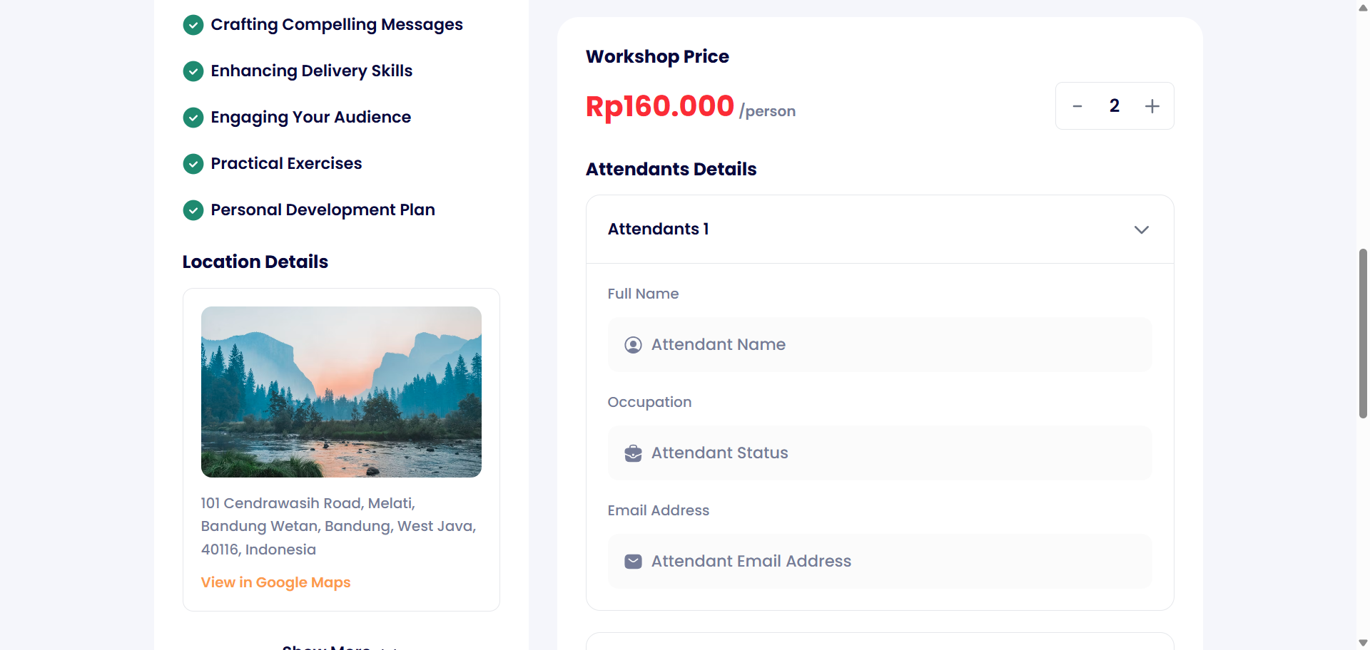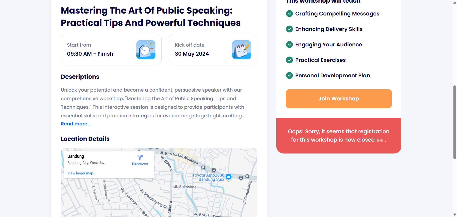 - Workshop Details - Comprehensive workshop information with booking CTA