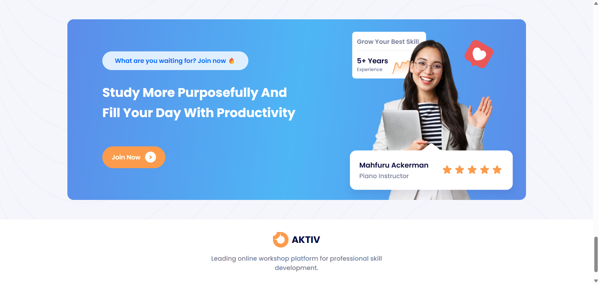 Aktiv – Workshop Booking Professional Modern HTML5 Website Template
