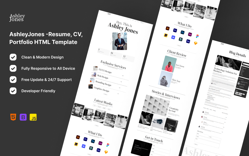 AshleyJones -Resume, CV, Portfolio HTML Template Website Template