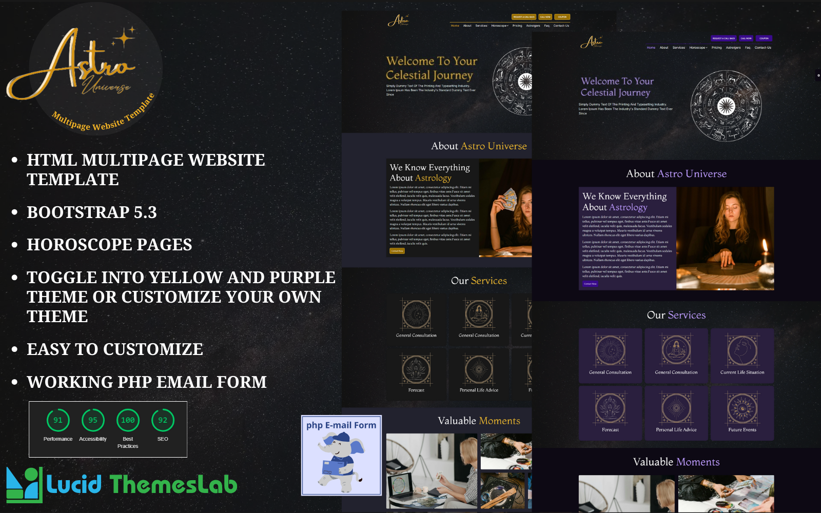 The Astro Universe Multipage Template is more than just a design — it’s a gateway to exploring the stars and connecting with astrology lovers worldwide. With PHP-powered communication, engaging design, and user-friendly navigation, this template offers everything you need to build a truly stellar astrology website.