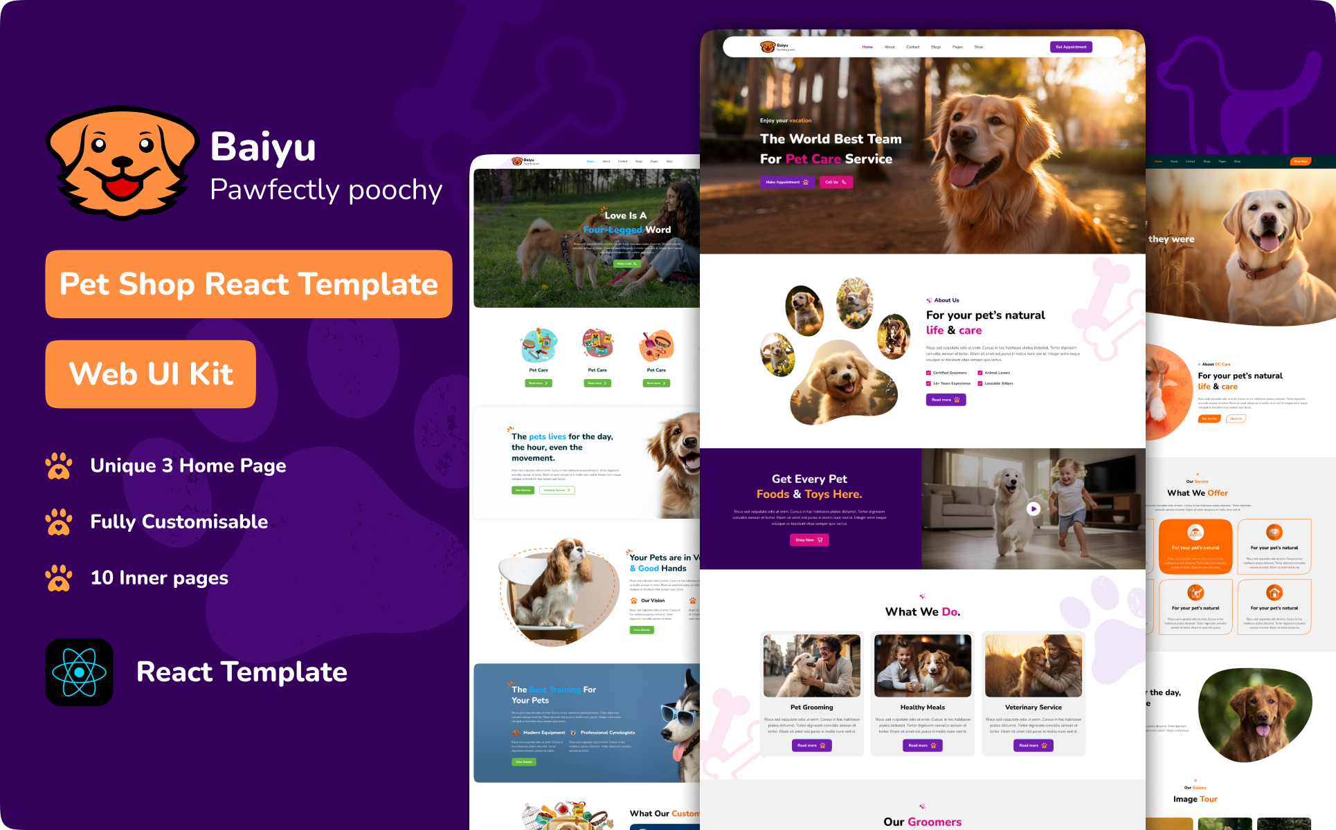 Baiyu - pawfectly poochy - Pet Shop React Template Website Template