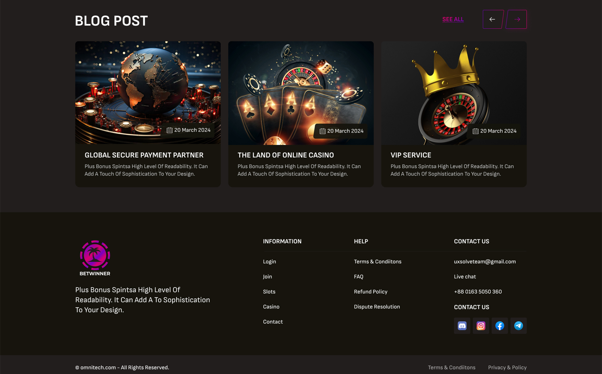 Our Online Casino & Gambling HTML Template is more than just a template; it's an investment in your online casino's success. With its stunning visuals, intuitive design, and focus on performance, you'll have everything you need to create an unforgettable player experience and turn your online casino into a winning destination.
