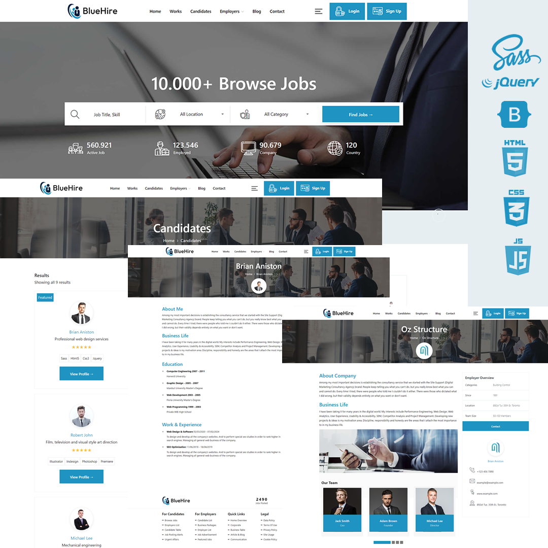 - Advanced Coding with Bootstrap & SASS: BlueHire is coded with Bootstrap and SASS, ensuring a responsive, flexible, and easily customizable template. The clean and well-organized code structure makes it easy to modify and extend, meeting the specific needs of any job portal.