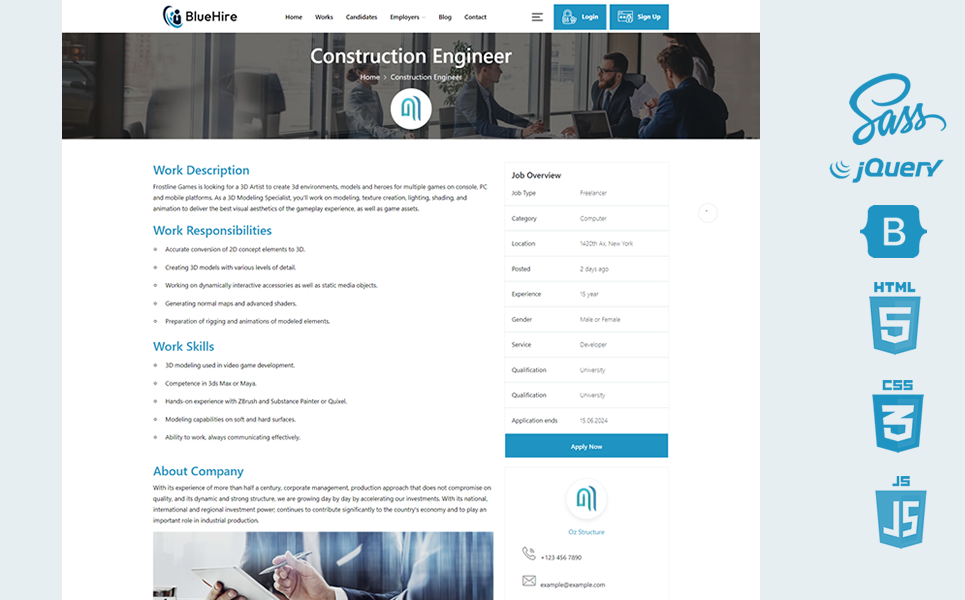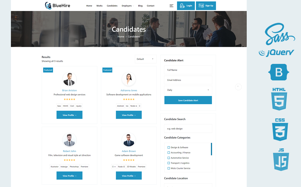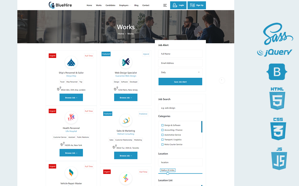 - Advanced Coding with Bootstrap & SASS: BlueHire is coded with Bootstrap and SASS, ensuring a responsive, flexible, and easily customizable template. The clean and well-organized code structure makes it easy to modify and extend, meeting the specific needs of any job portal.