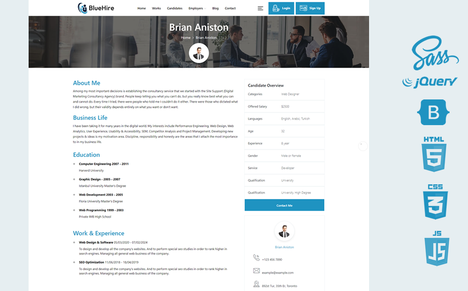 Step into the future of job portals with BlueHire, a powerful and feature-rich HTML5 template designed to elevate the hiring and job-seeking experience. Built with cutting-edge technologies, BlueHire is meticulously crafted to cater to both recruiters and job seekers, offering an intuitive, seamless, and visually stunning platform.