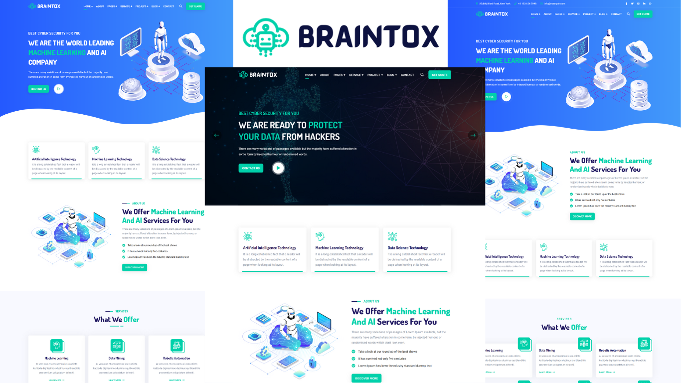 Braintox is a clean modern HTML5 template created for Machine Learning and Data Science startup website.Braintox template is surely going to give a boost to your Startup business. Braintox is a ready-made template where only essential contents need to be updated. Braintox template contains stunning UX/UI for publishing the contents in a better way to the audience. Braintox is 100% fluid responsive and fits any device perfectly. By using Braintox template you can easily build your own website just you like it!.