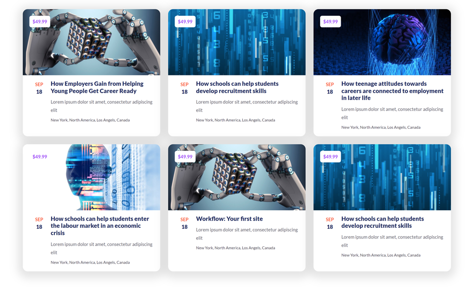 Dedicated layouts for webinars, bootcamps, training events, and registration.
