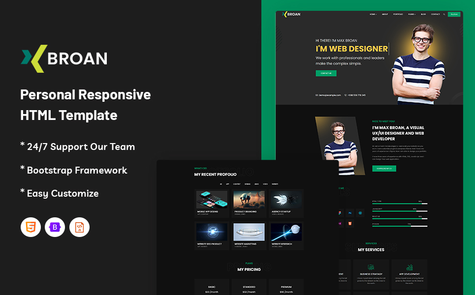 Broan is a modern and sleek Personal Responsive Website Template designed to showcase your personal portfolio, blog, or resume in a professional manner. With its clean and minimalistic design, Broan ensures that your content stands out and is easily accessible to visitors on any device. This template is fully responsive, meaning it adapts seamlessly to different screen sizes, ensuring a consistent user experience across desktops, tablets, and smartphones. Broan also comes with a variety of customizable features, allowing you to personalize the template to suit your unique style and branding. Elevate your online presence with Broan and make a lasting impression on your audience.