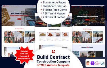 Build Contract is HTML 5 website template for a Leading Builder company that is purpose-built to create sleek and best-quality related to construction business good websites. In this HTML 5 theme, we have included every vital page needed for any organization's website. Build Contract website template is built using high-end technology which runs nowadays HTML5 and SCSS. Four different types of home page layouts have been given in this website template of ours, different types of section-wise layouts have been provided for the pages of the blog. You can also create an online shop related to your construction business in it. In this way, it is an excellent and powerful website template related to many other features. This template has a working contact form four types of blog pages, and shop pages. We are confident that this template created by us will prove to be an excellent template for the construction business as it includes various features detailed below.