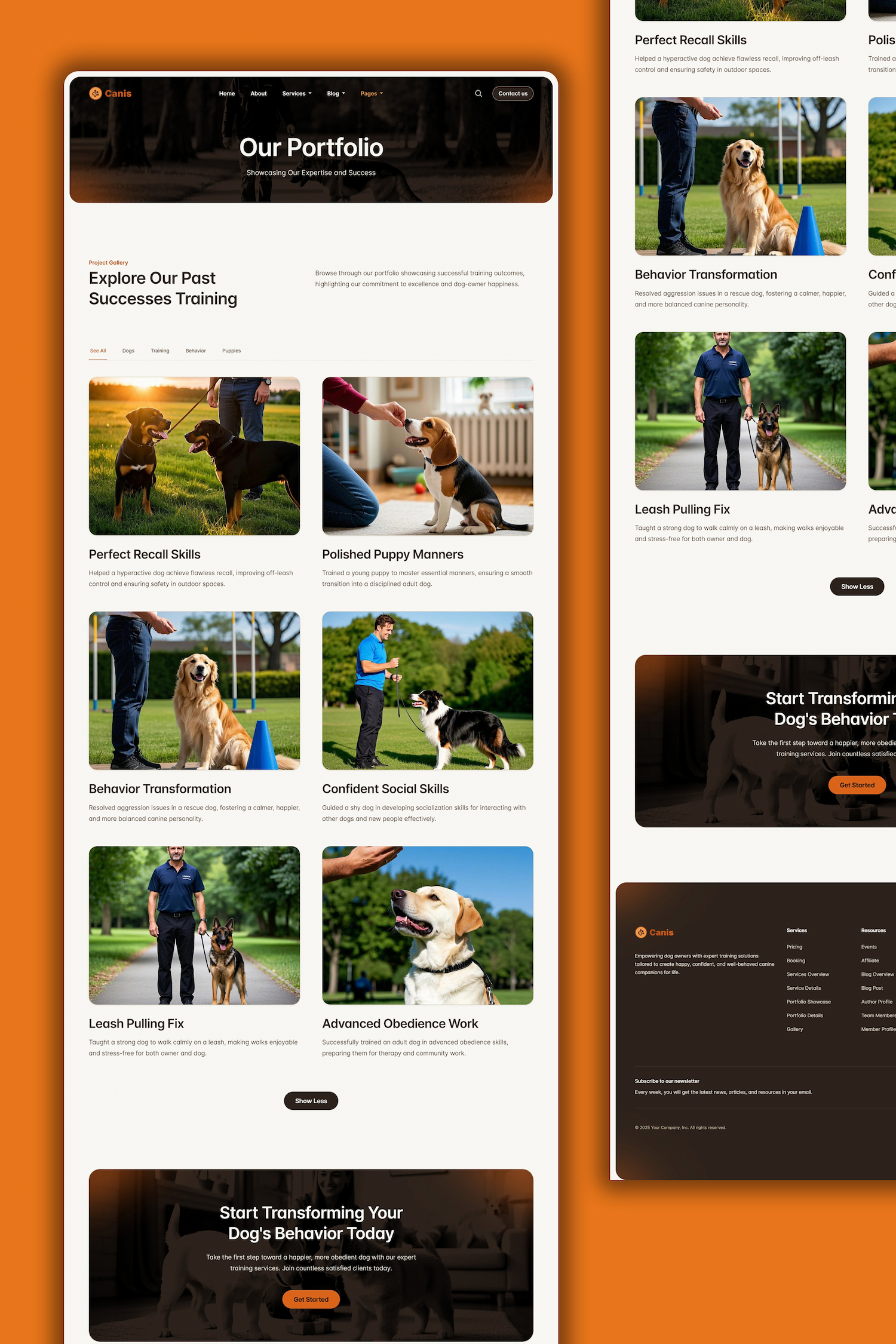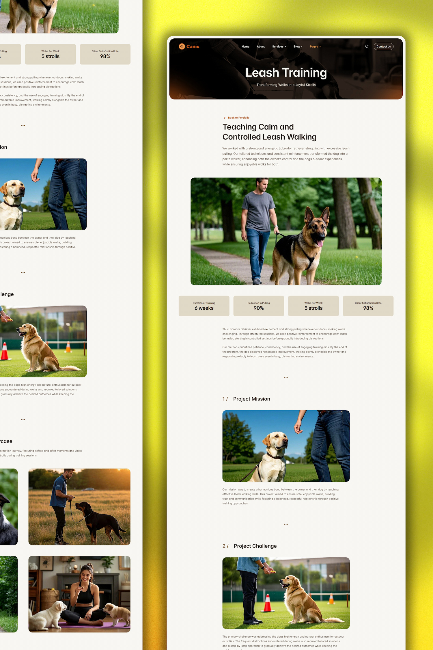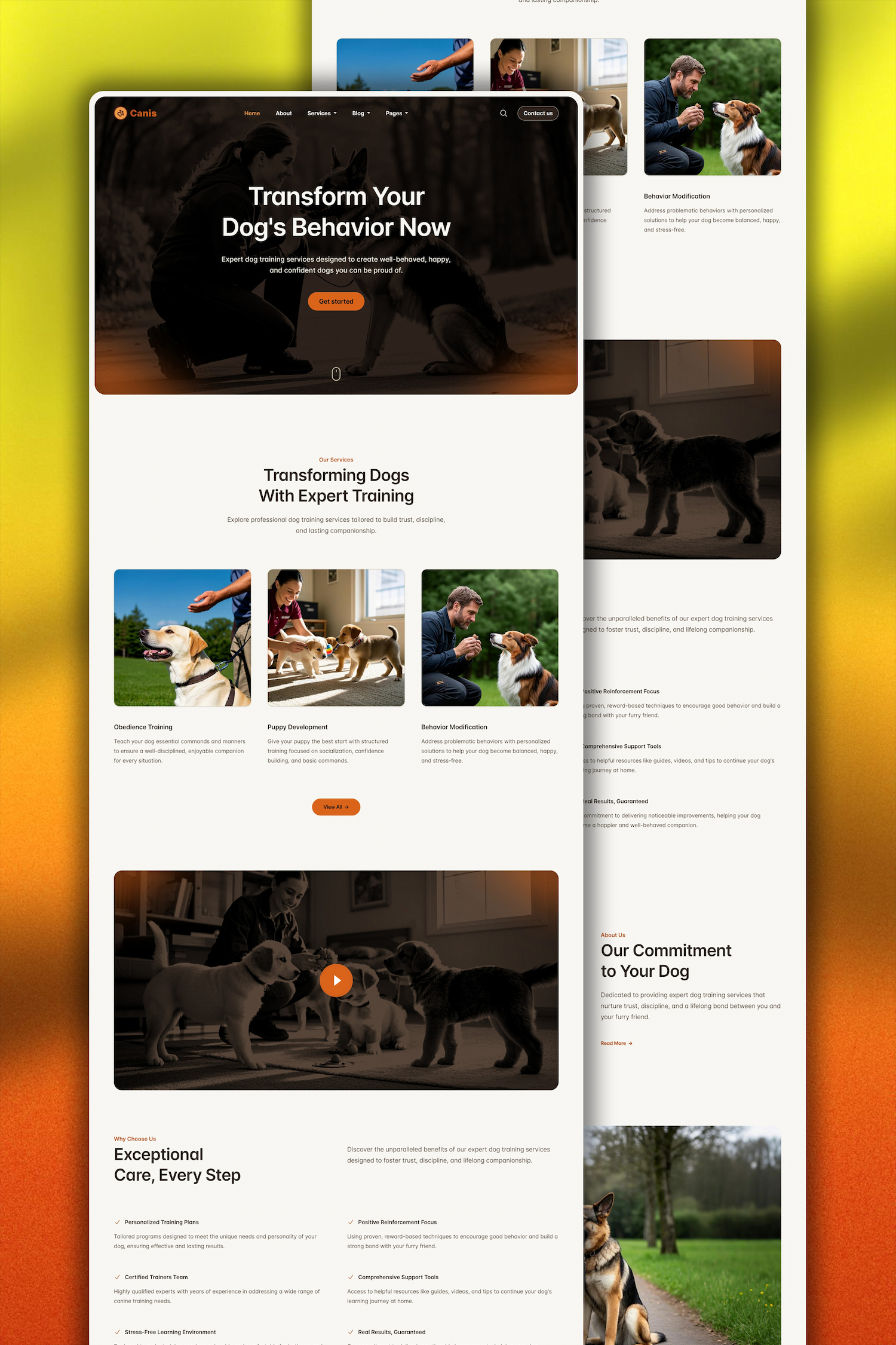 Discover a transformative digital solution meticulously crafted for dog training professionals who aspire to establish an influential online presence. This cutting-edge website template is designed to captivate your audience from the first click, blending an elegant modern aesthetic with robust functionality. Every element is thoughtfully developed to reflect the passion, precision, and innovative spirit that defines the contemporary dog training industry, ensuring that your business stands out as a leader in its field.