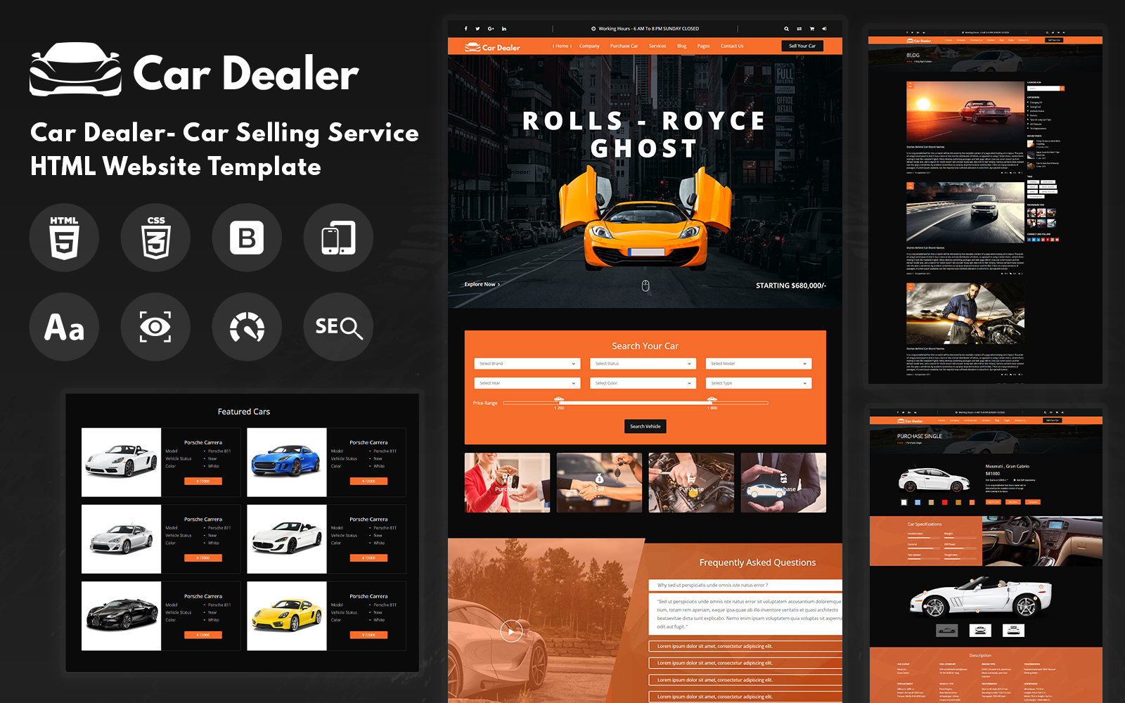 Car Trader Automotive HTML Website Template is an accurate website template for your car, automobile, car repair services, automobile services, car accessories, spare car parts, car washes, car renovating stores, etc. It includes 7 HTML5 pages that allow your customer to look at the models of the cars, their model availability, colors, and more.