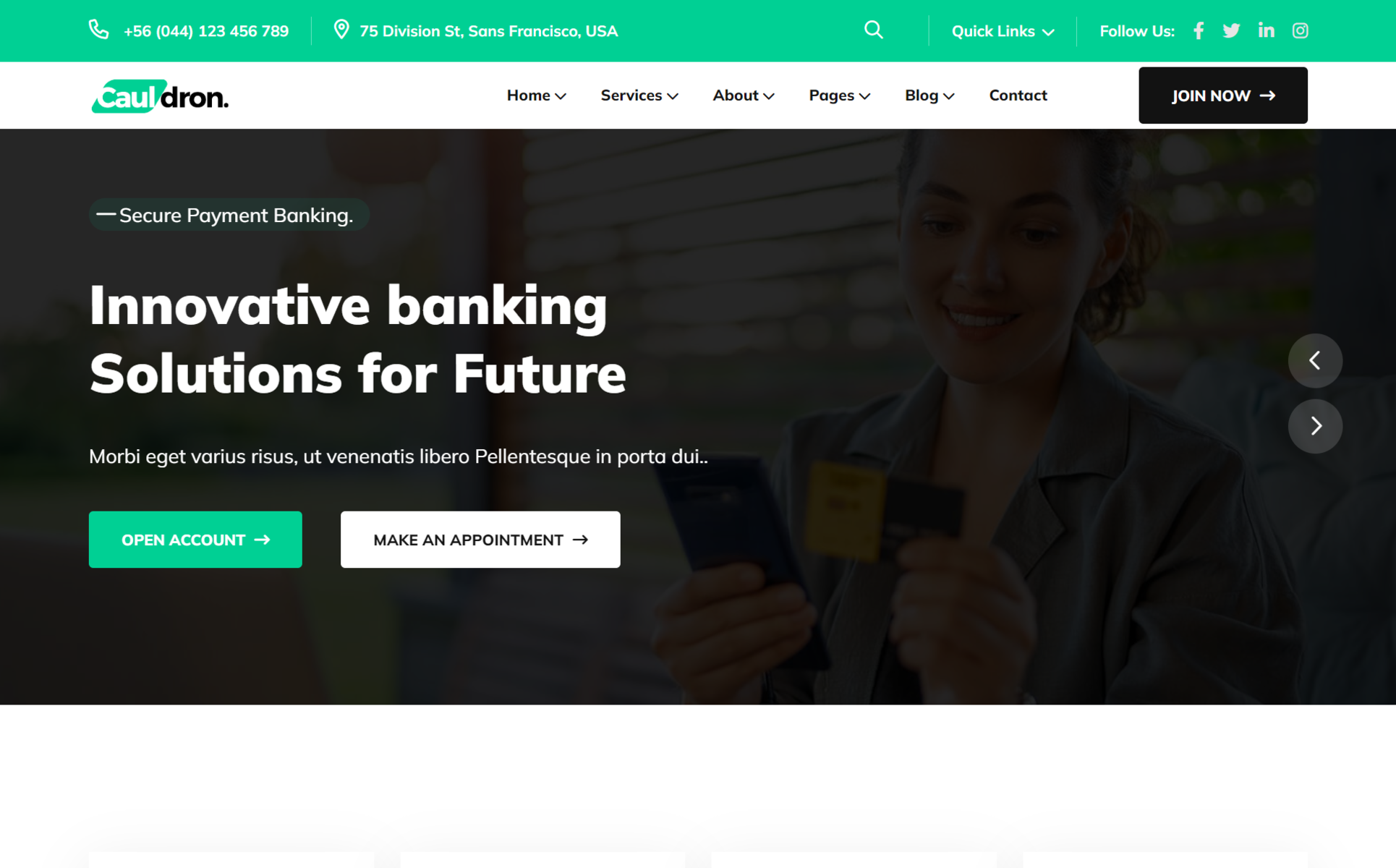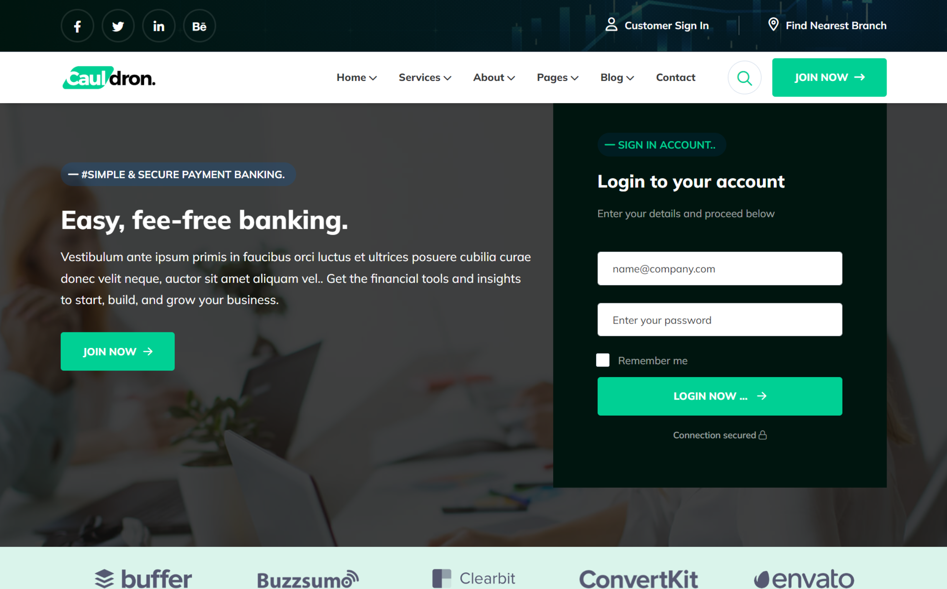 Cauldron is an HTML Banking and Finance template that will immerse your clients in a seamless online banking experience, featuring sleek, fully responsive design, intuitive navigation, a registration, forgot password and login page, a working contact form and more. The template blends with the magic of modern finance with a user-friendly interface and as well a modern and professional look, offering a delightful and trustworthy online banking experience.