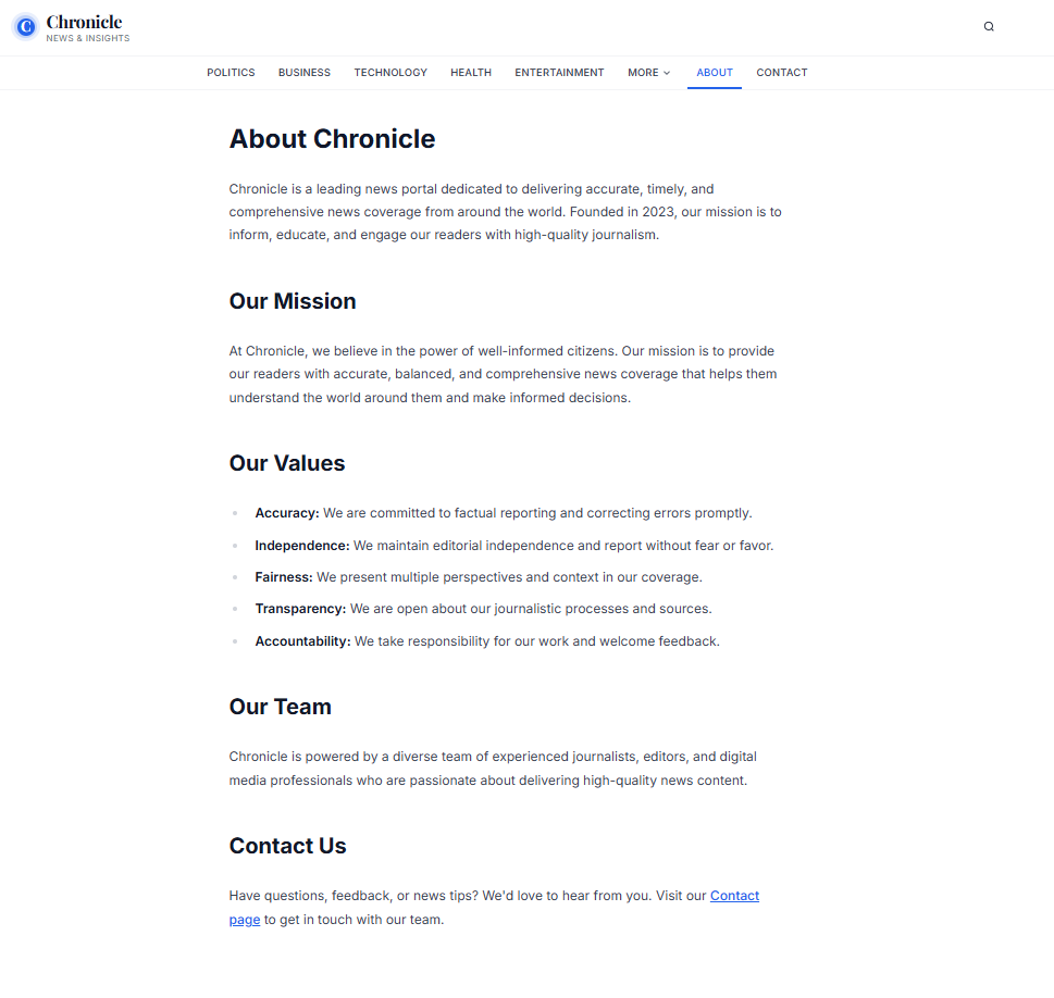 Chronicle captures attention with its clean layout and responsive design. Built with Tailwind CSS, it provides flexibility in styling while ensuring fast load times and optimal performance across all devices. From large headlines that attract attention to thoughtfully placed visuals that complement the text, every design element serves to enhance the reading experience.