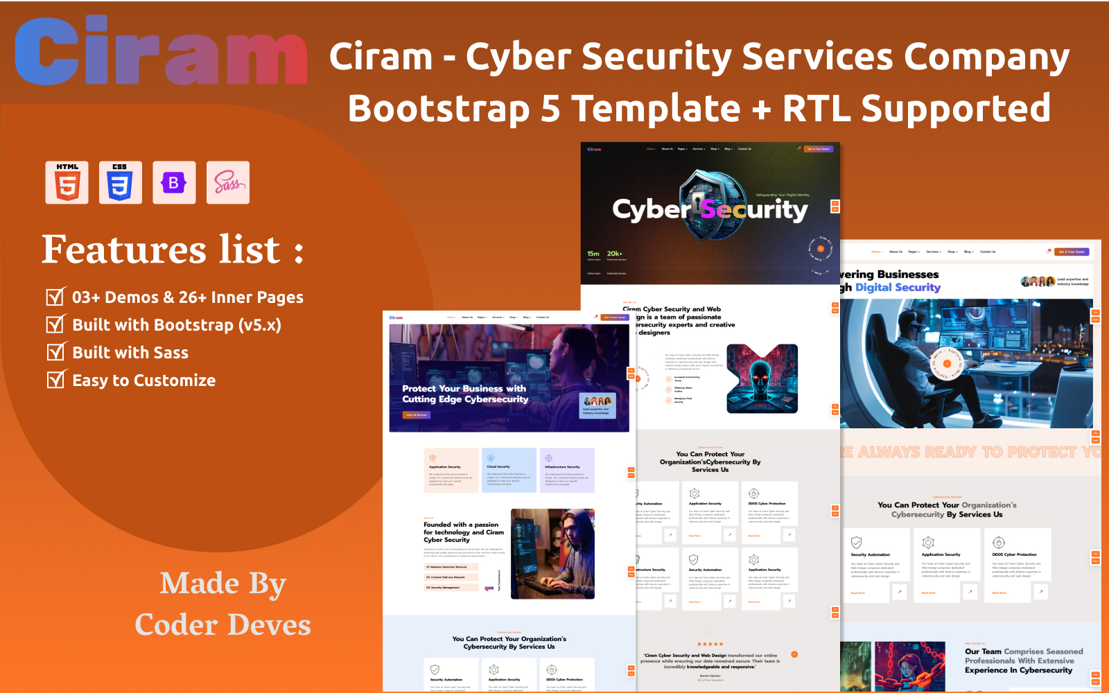 Ciram - Cyber Security Services Company Bootstrap 5 Template + RTL Supported Website Template