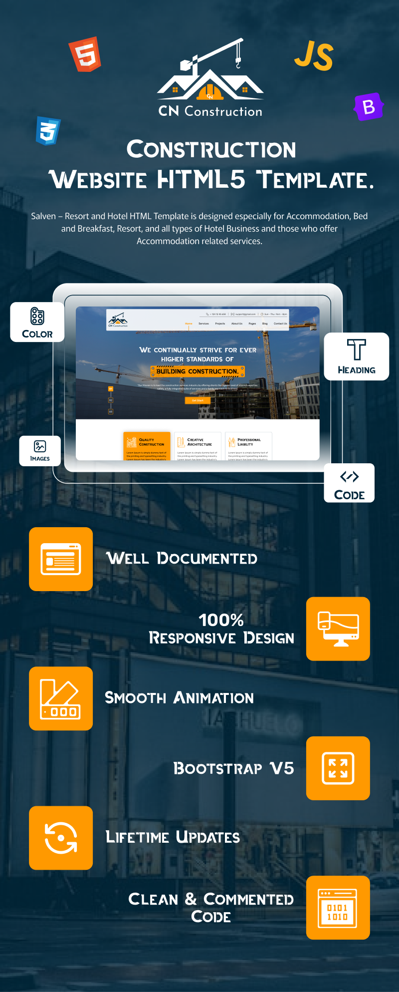 - Modern & Minimal Design: CN Construction is fully built with accurate user experience. We create user persona first then design the main UI and coded version.