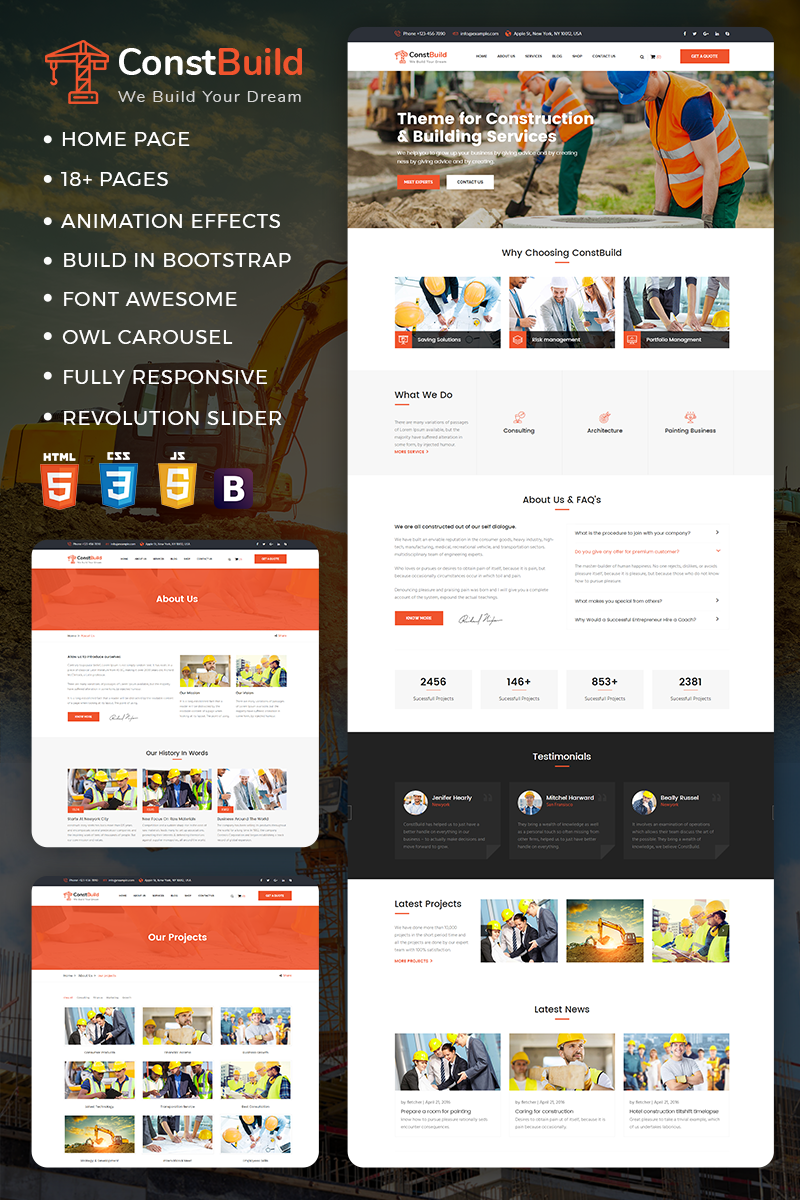 ConstBuild is a clean, creative, unique template for renovation, construction & building company. We are giving 1 best design home page with 20+ HTML Files.