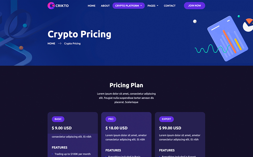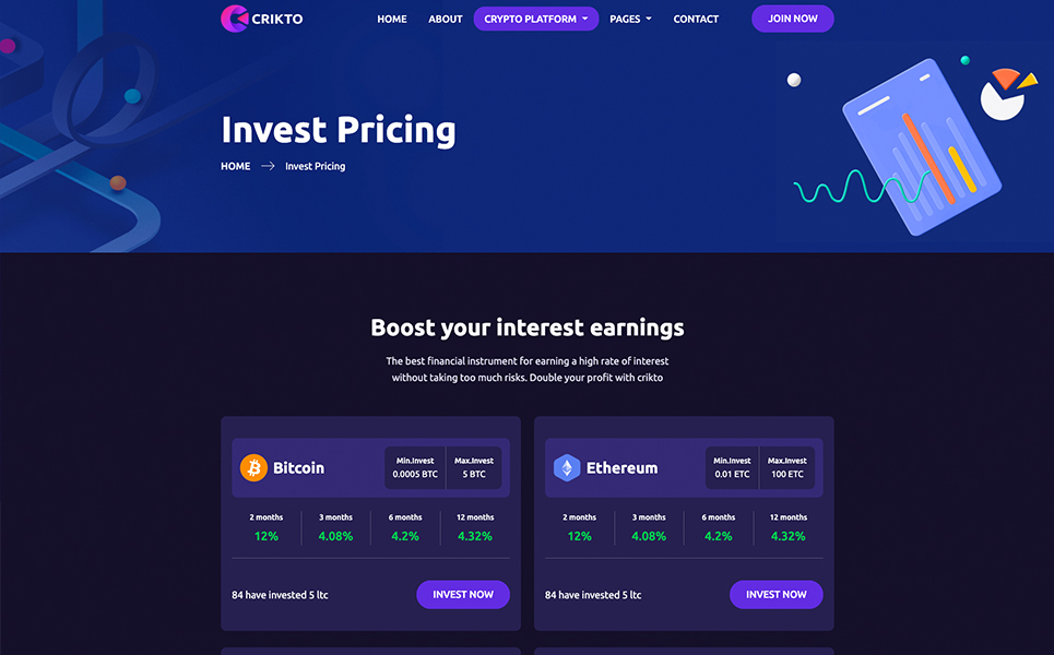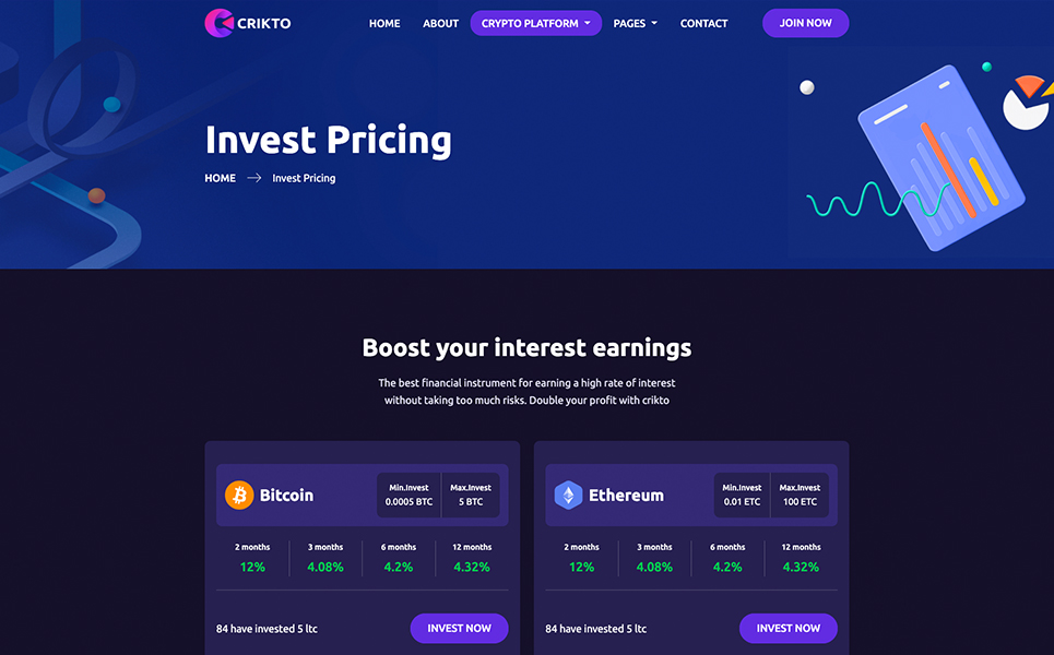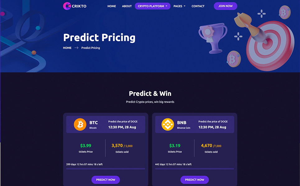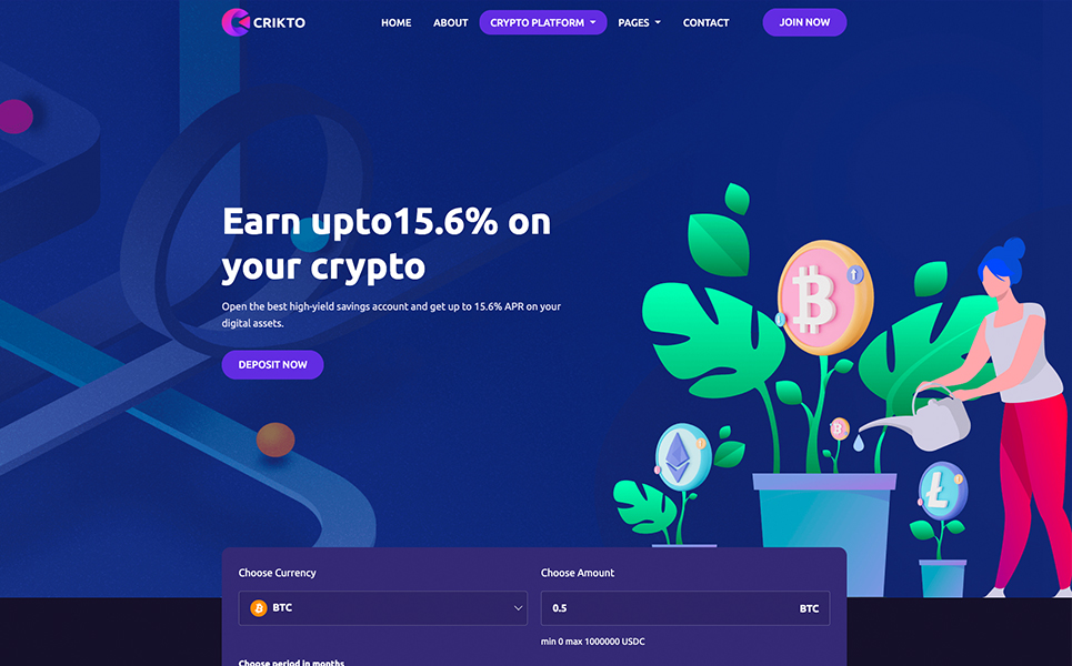 Crikto - Crypto Prediction, Trade, Investment And Crypto Lending, Borrowing HTML5 Template Website Template