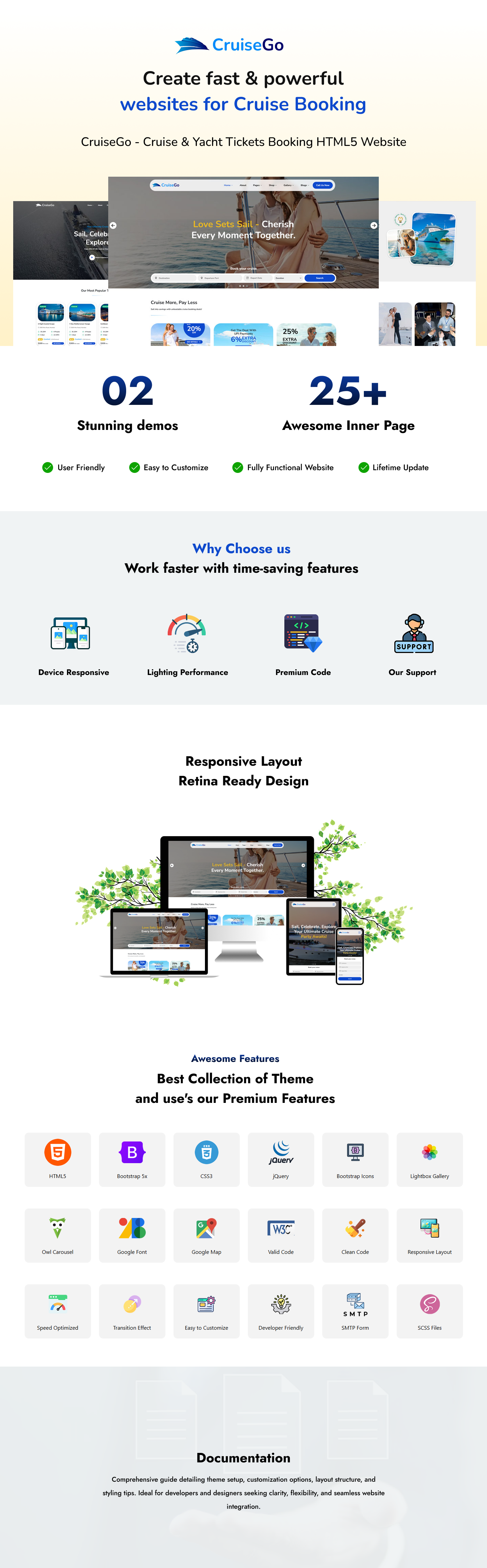 CruiseGo - Cruise & Yacht Tickets Booking HTML5 Website Website Template