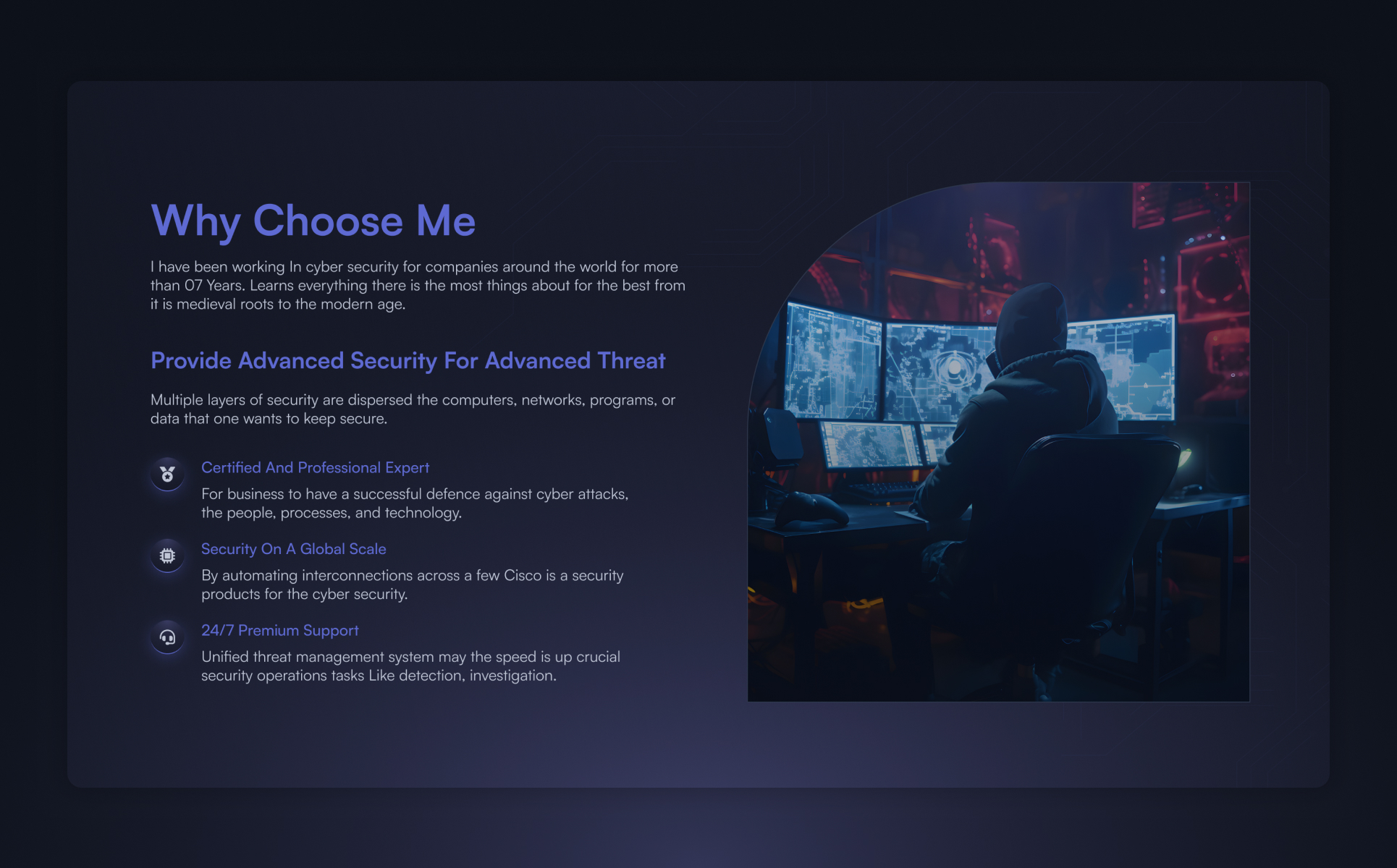 In addition to its sleek look, Csume v3 is an SEO-optimized cyber security portfolio template. It ensures your work reaches the right audience and helps generate more online visibility. Every detail is designed to support your growth and credibility in the cybersecurity field.