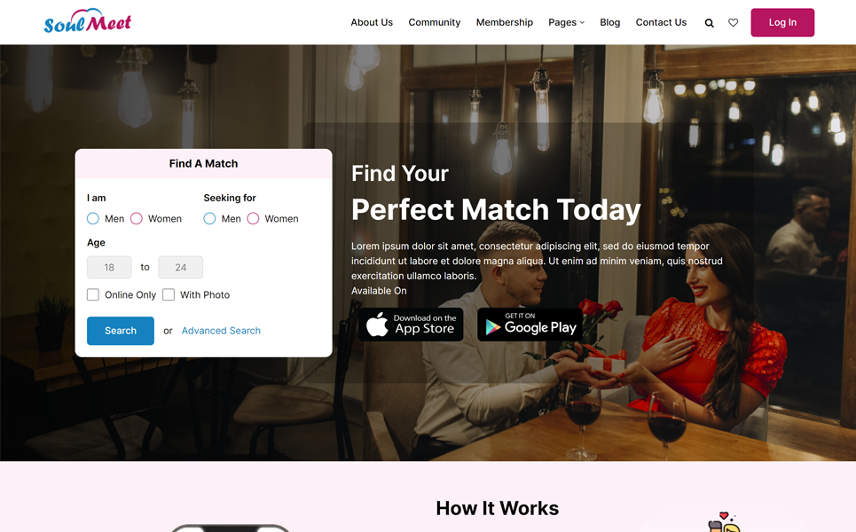 The Dating App and Website HTML Template is a modern, responsive, and SEO-optimized template designed for dating websites, matchmaking platforms, social communities, and relationship-based apps. Built with a clean interface and Bootstrap 5.3, it delivers fast loading speed, mobile-first design, and easy customization. This template is ideal for anyone searching for a dating website template, dating app HTML template, or matchmaking website design that is simple to launch and easy to scale.