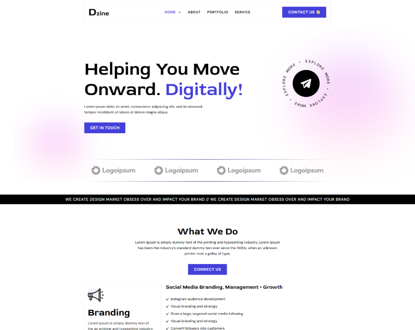 Dzine - Modern Design Agency HTML Template is a creative firm that specializes in crafting innovative visual solutions for brands and businesses. We focus on user-centered design, blending aesthetics with functionality to create impactful experiences across digital and physical platforms. Our services often include branding.