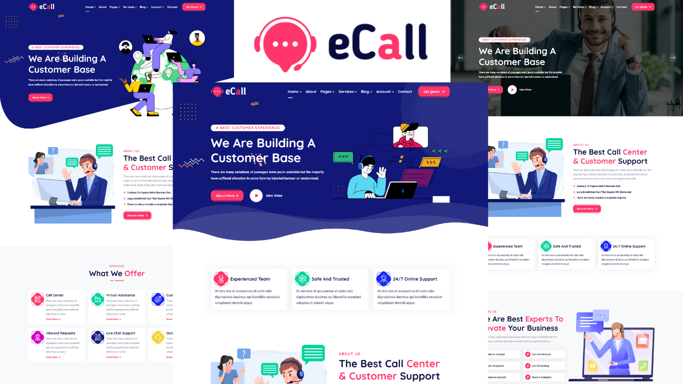 eCall is perfect and proficient HTML5 template. eCall made particularly for Call Center, Telemarketing, Live Chat Support, Virtual Assistance, and any kind of Customer Care Service. eCall gives numerous different potential outcomes which will assist you with effectively making a wonderful, shocking and perfect site. eCall documents are efficient furthermore, named appropriately so it's exceptionally simple to design the entirety of the site.eCall format adjusts requirements and represent your substance in convincing way. eCall Template give many elements to make your own organization site effectively without composing any line of code.eCall template with a dynamic and clean design not only brings a hint of elegance and sophistication to your site, but it also provides you with a pleasant user interface.