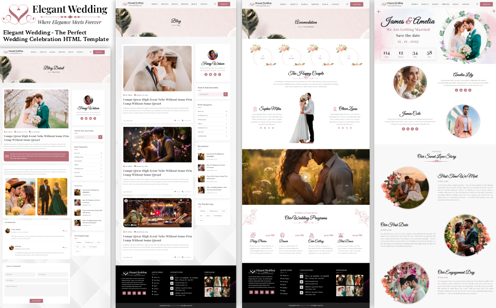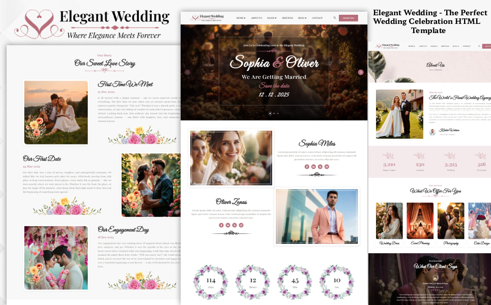 The Elegant wedding HTML Template stands out as a beautifully designed, responsive, and feature-rich solution for creating unforgettable wedding websites. Here's why Elegant wedding is the perfect choice for your special day: