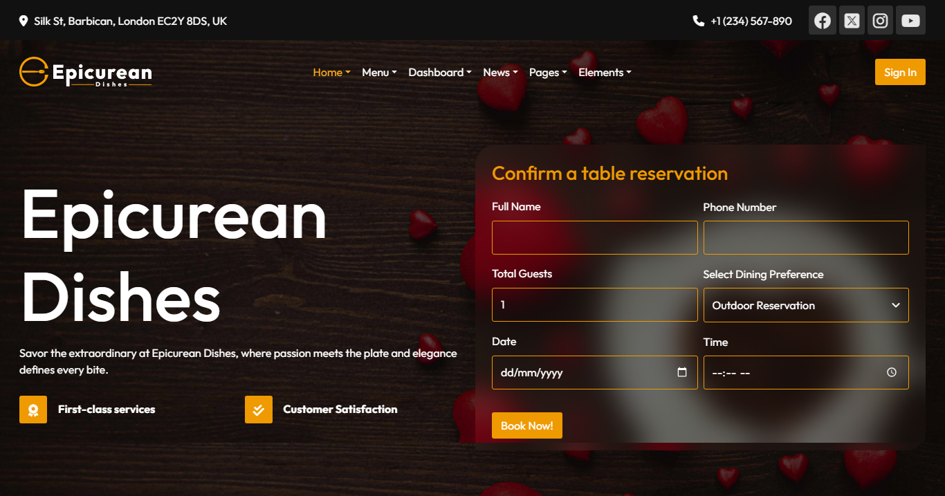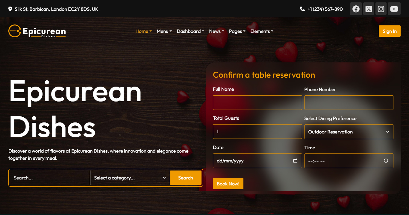 Epicurean Dishes – Multipurpose Restaurant Theme Website Template