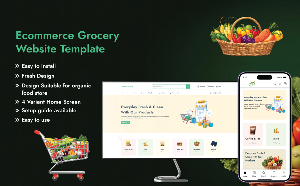 This template is ideal for anyone looking to create a reliable, scalable, and user-friendly grocery ecommerce platform. Whether you are launching a new business or upgrading an existing one, our template provides everything you need to establish a strong online presence and deliver a seamless shopping experience.