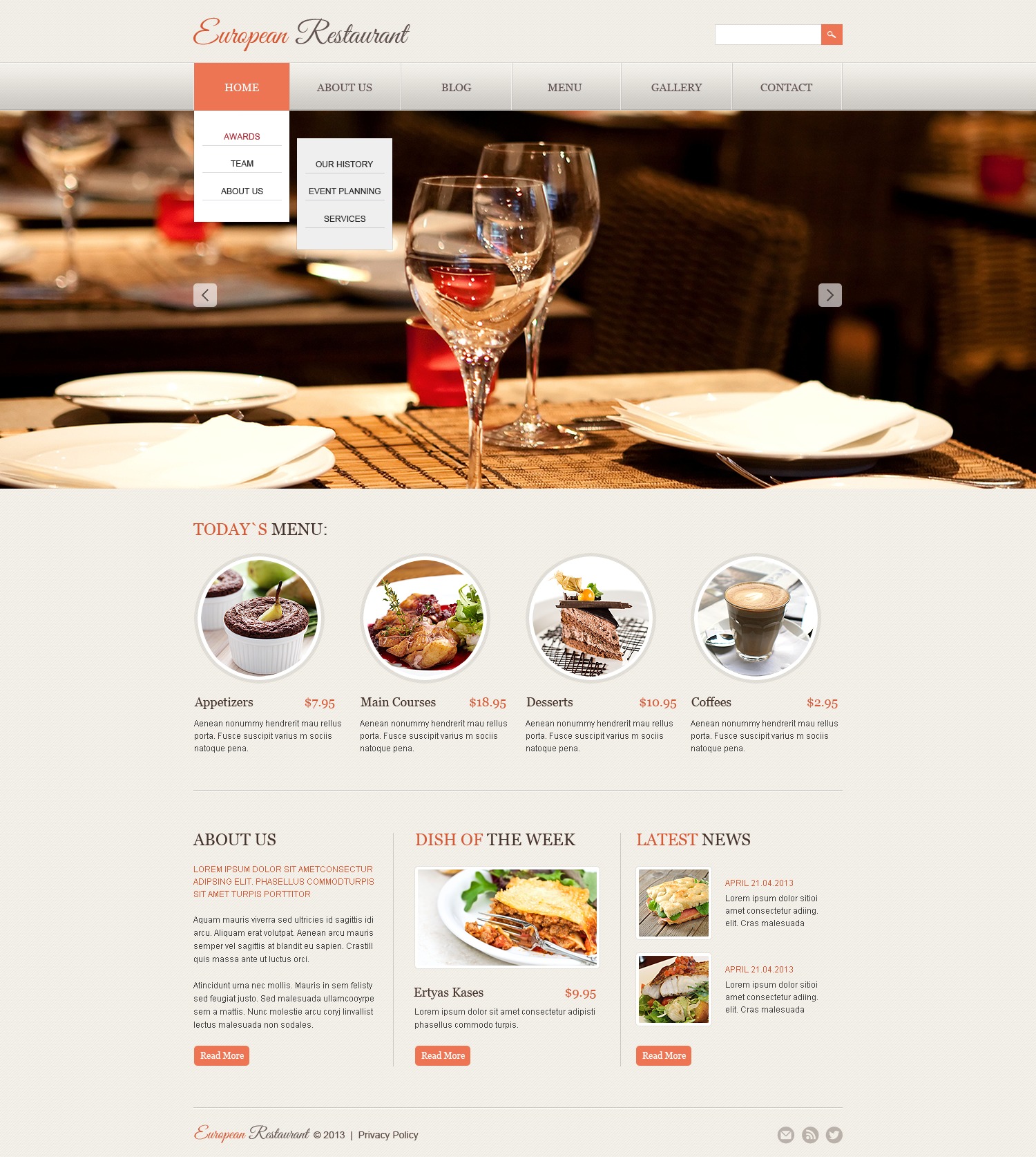 – create 5 basic pages (Home, About us, Services, Gallery, Contacts) with sample texts and images which match the chosen design, and a blog page (however, there might be minor design differences due to the default WordPress functionality)