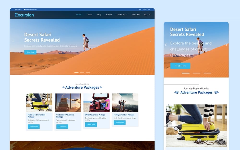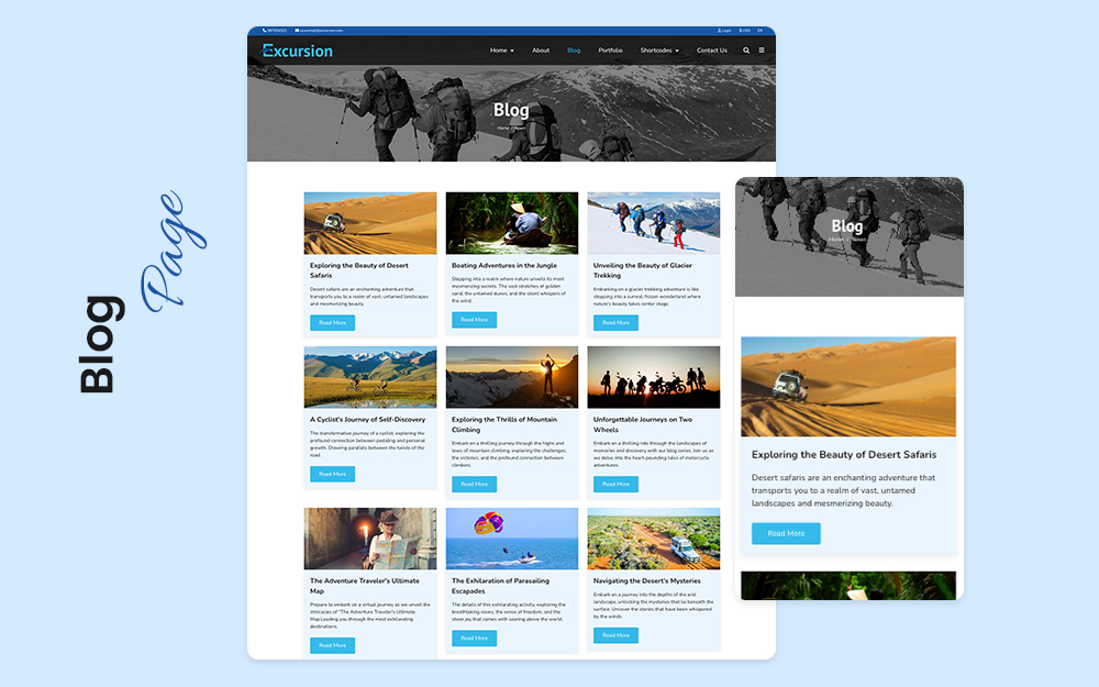 If you’re just passionate about exploring the world, embark on a journey of discovery with our Excursion HTML Template, your passport to creating a captivating and immersive travel website.